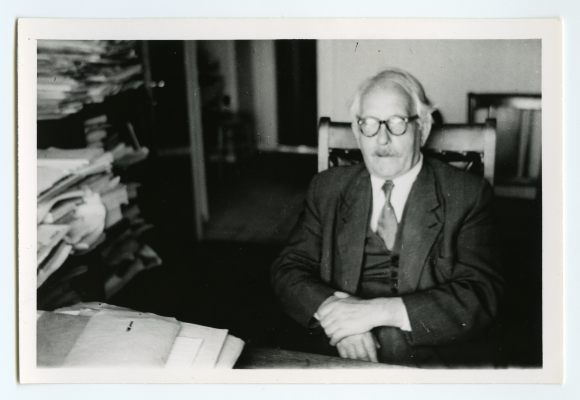 Suits, Gustav. Töölaua taga istumas