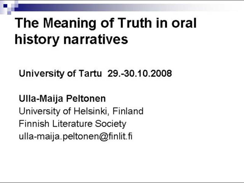 The Meaning of Truth in oral history narratives