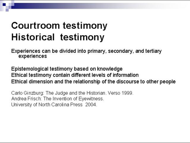 Loengus käsitletakse pärimusliku ajaloo uurimises keskseid mõisteid „tõde“, „uskumine“ ja „teadmine“, esitades küsimuse nende omavahelistest suhetest. Osundatakse erinevatele tõe kriteeriumidele teaduslikus uurimistöös. Ühe Gulagi üleelanud mehe omaeluloolisi jutustusi analüüsides näidatakse, et pärimusliku ajaloo vaatepunktist avaldub ‘tõde’ jutustatava tähenduses.