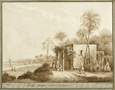 Hispaania, kohavaated, maastikud, baltisaksa, kunst, koopiad, joonistus, seepia (kunst), 19. saj., 1820-ndad