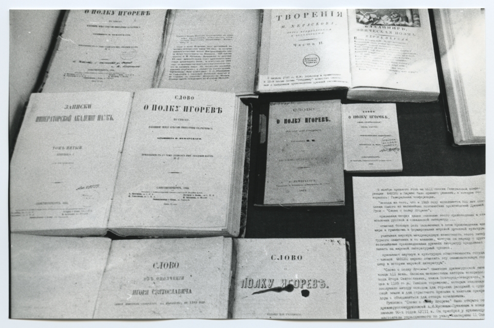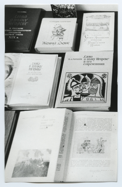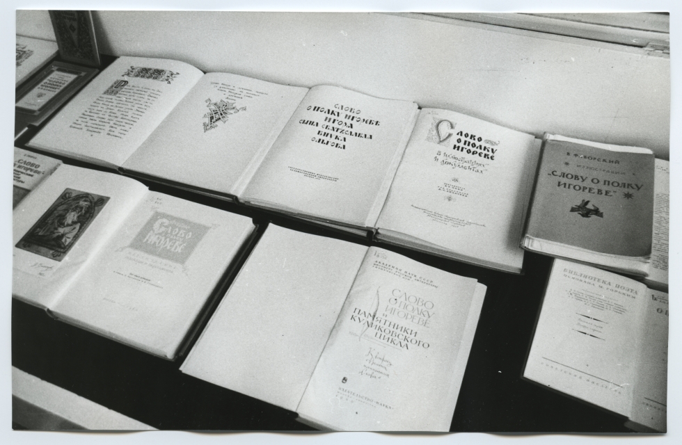 Näitus "Lugu Igori sõjaretkest" Tartu ülikooli raamatukogus lugemissaalide fuajees 1985. a.