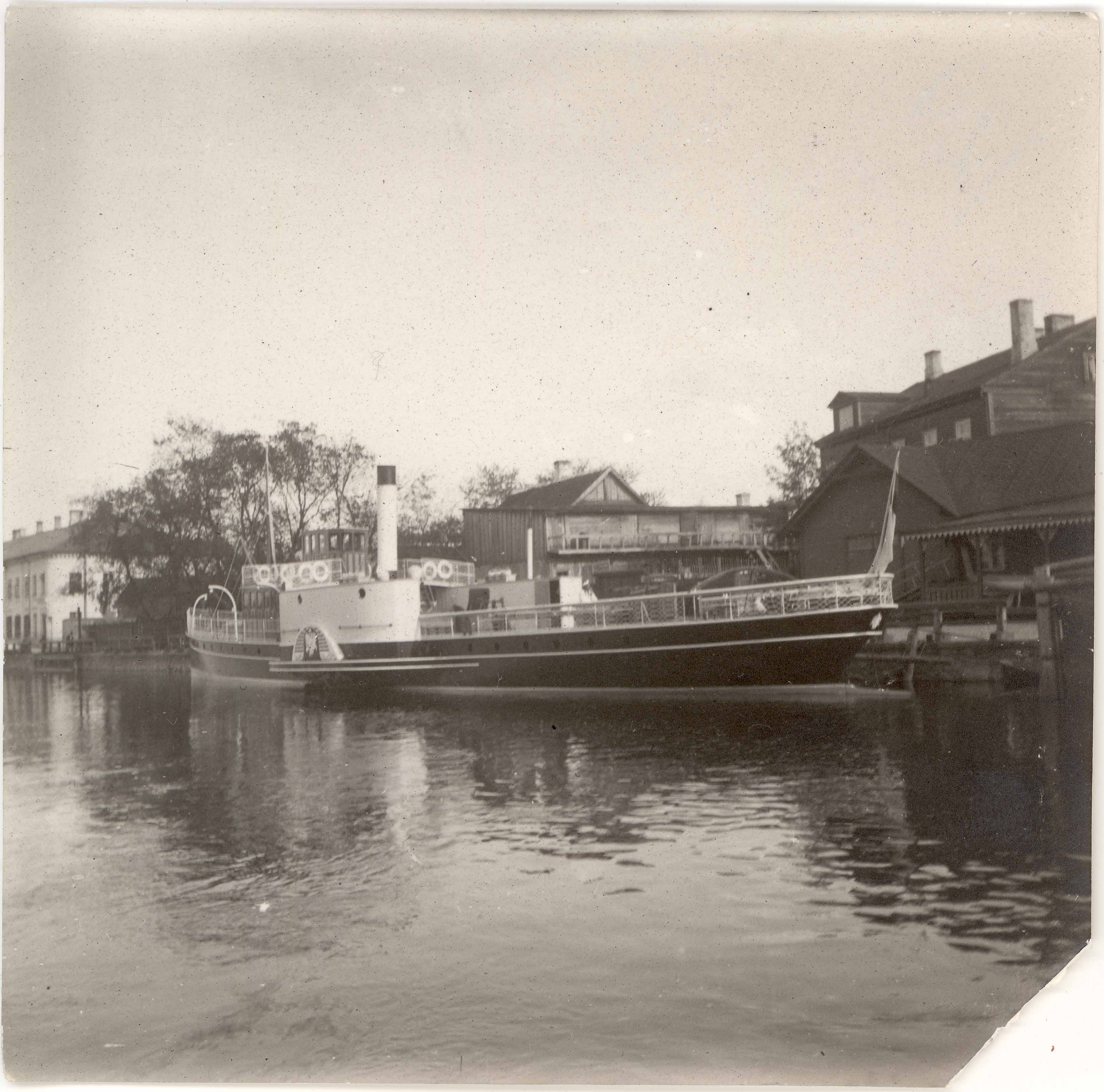 Tartu. Jõelaev Emajõel Riia tn alguse juures, praeguse Võidu silla kohal. Vaade SO-sse. Tagaplaanil vasakul maja Auriku tn 2.