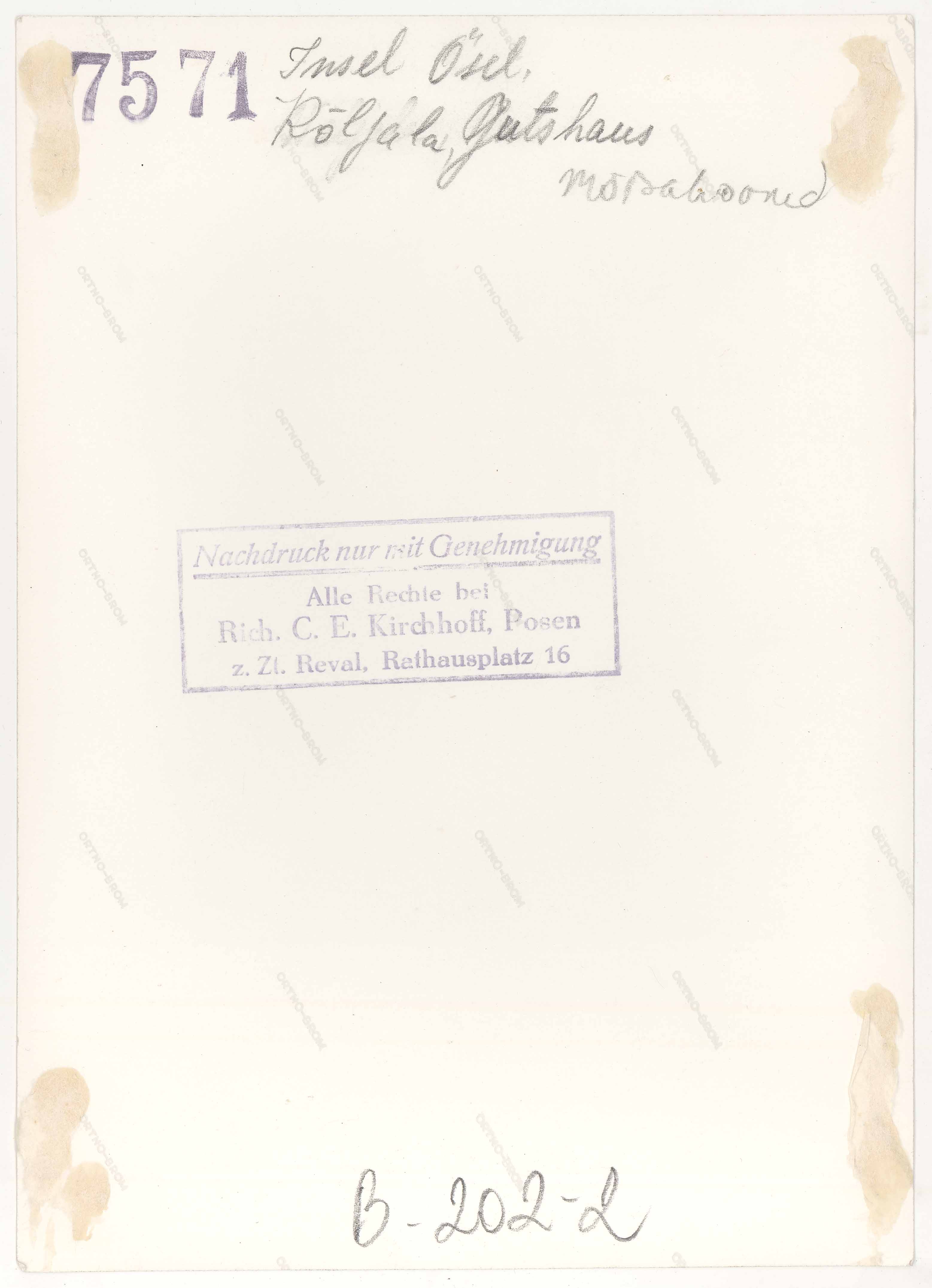 Tekst foto tagaküljel: Insel Ösel. Kõljala Gutshaus. Mõisahooned. Templid: Kirchhof, 7571