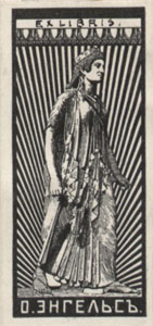 Antiikne seisev figuur pöördes paremale, taustal must-valged kiired. Joonises all: О. ЭНГЕЛЬСЪ.;"Иваск