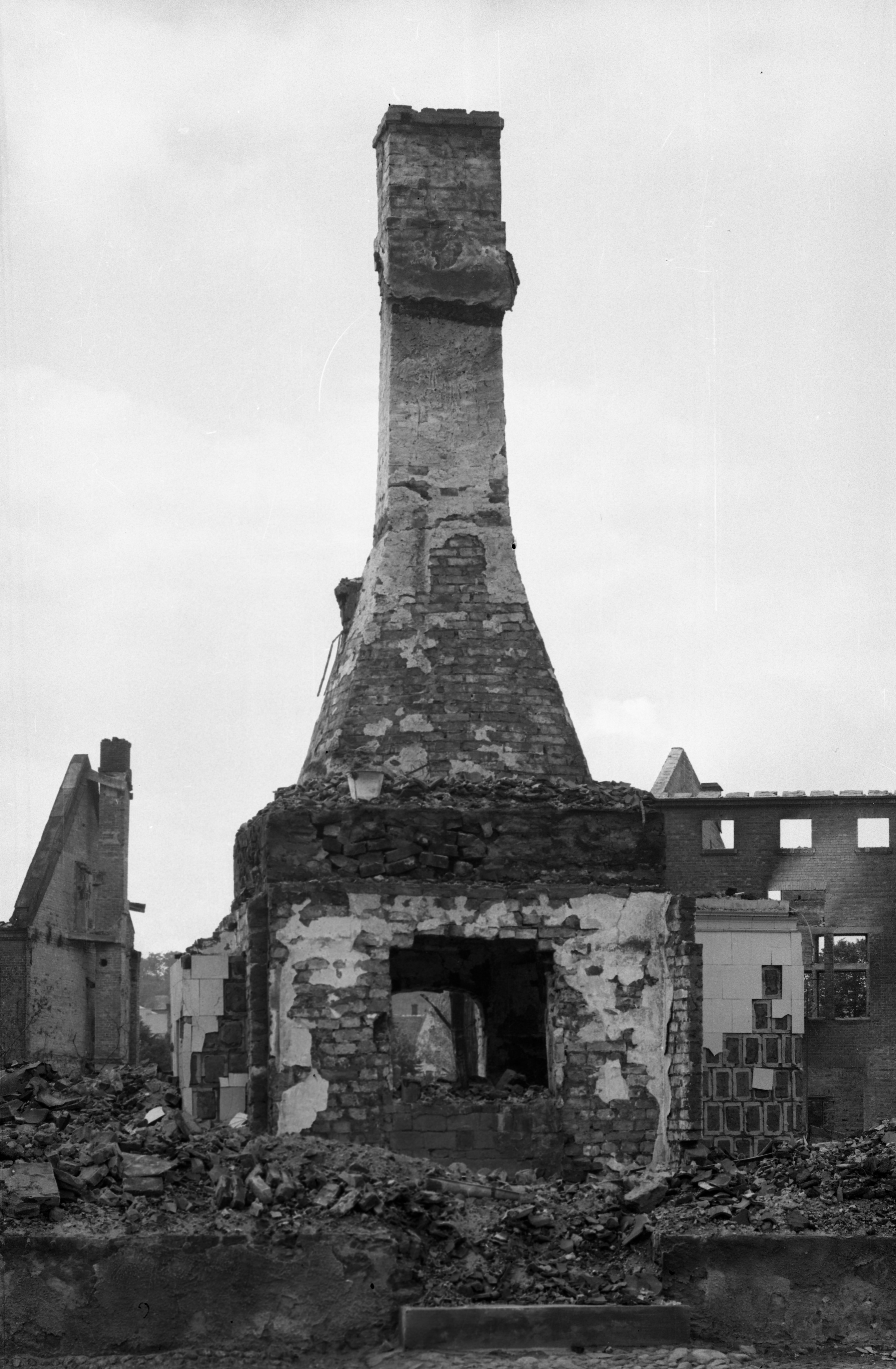 Tartu. Narva tn. Sõjapurustustes hävinud maja (Holmi tn Ossi suitsuahi) korsten