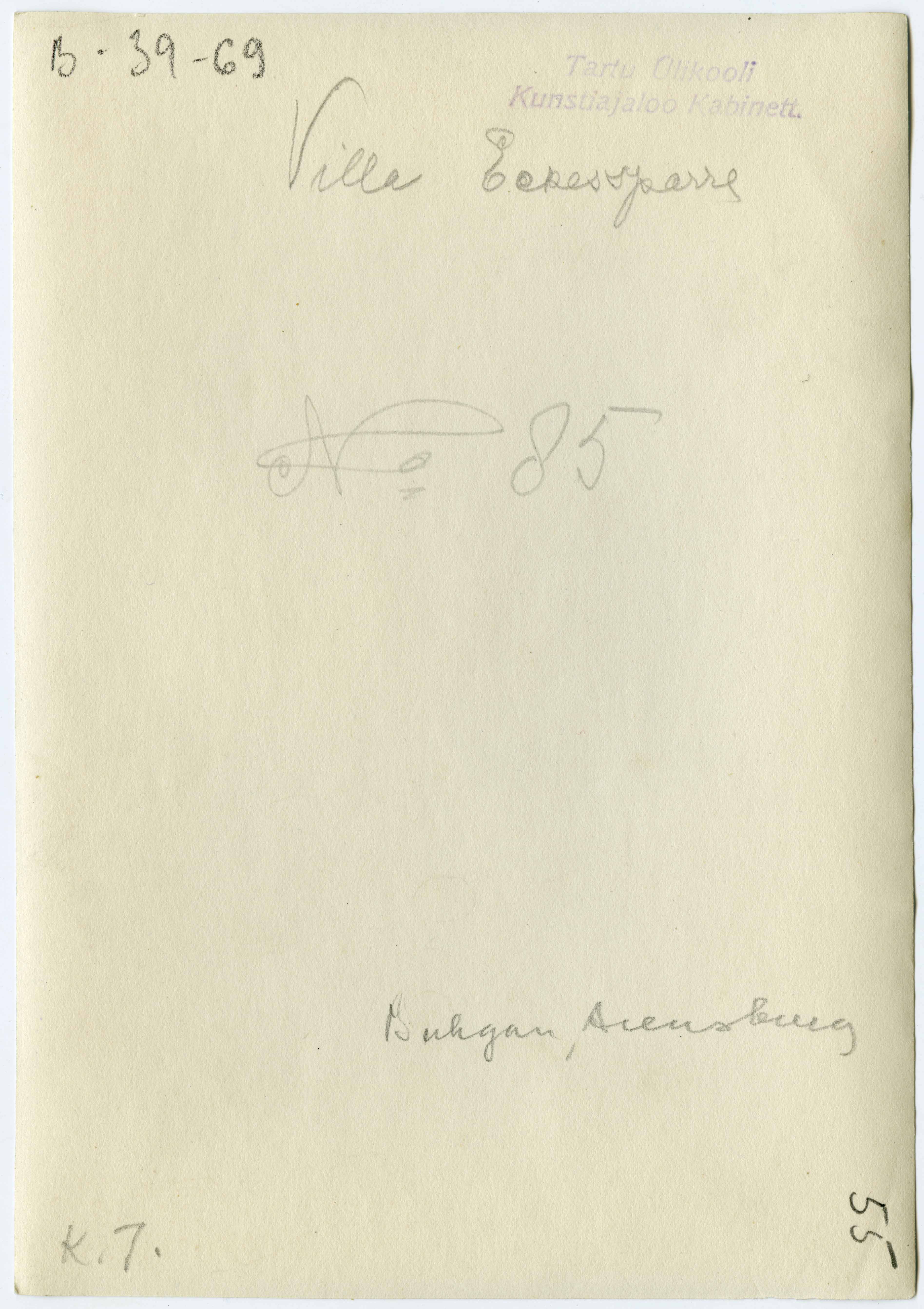 Tekst foto tagaküljel: Villa Eckessparre. No 85. Buhgan, Arensburg. K. I. Tempel: Kabinett