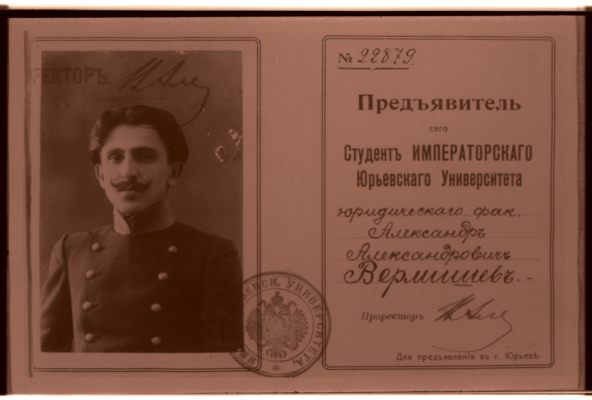 [Tartu ülikooli üliõpilase Aleksandr Vermiševi üliõpilaspilet]