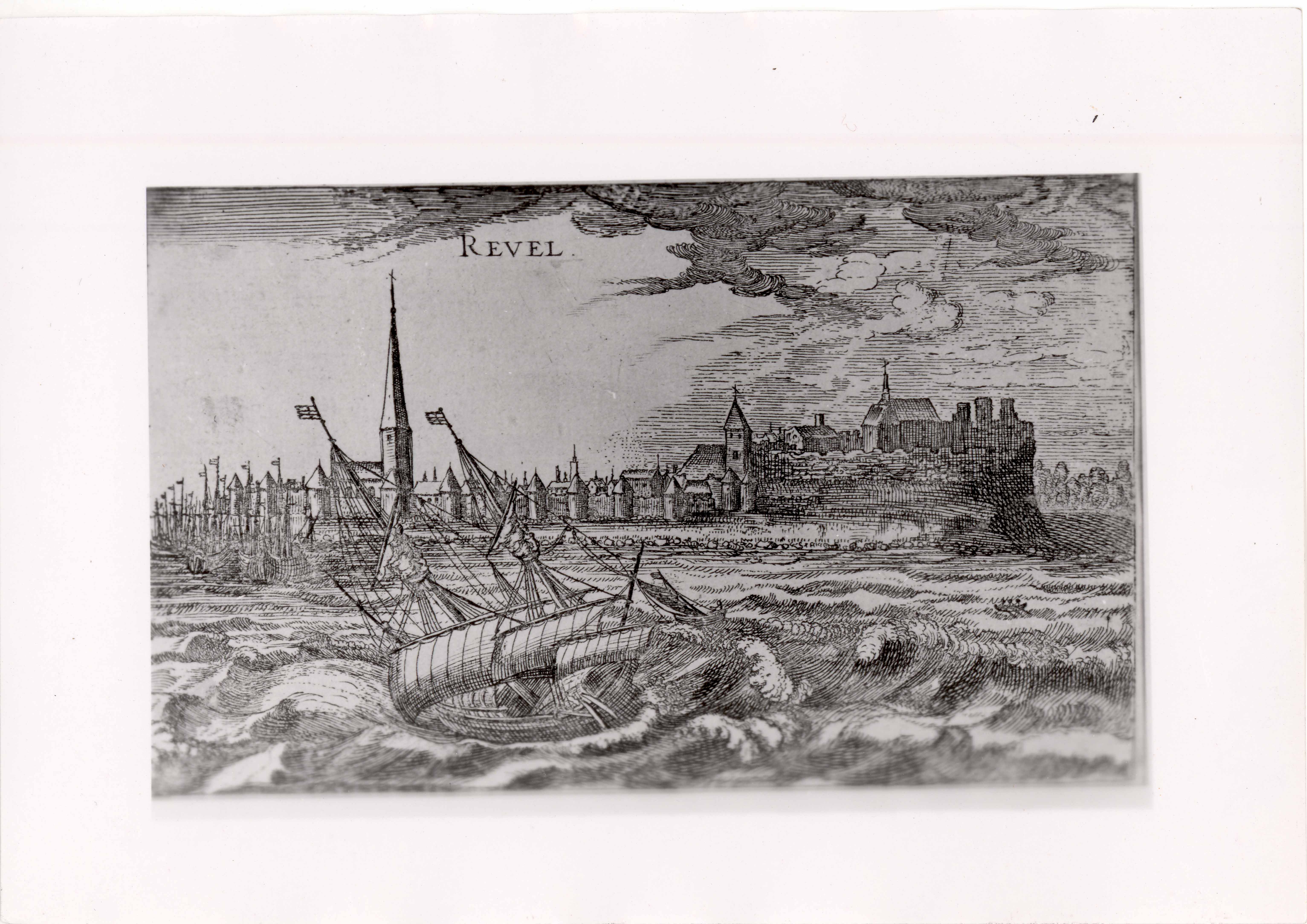 Tallinn. Vanalinna vaade S-st Tallinna lahelt . Gravüür. Goeteeris. 17. sajand
