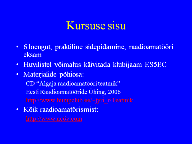 BeSt programmi toetusel loodud e-kursuse "Amatöörraadioside" videoloeng.