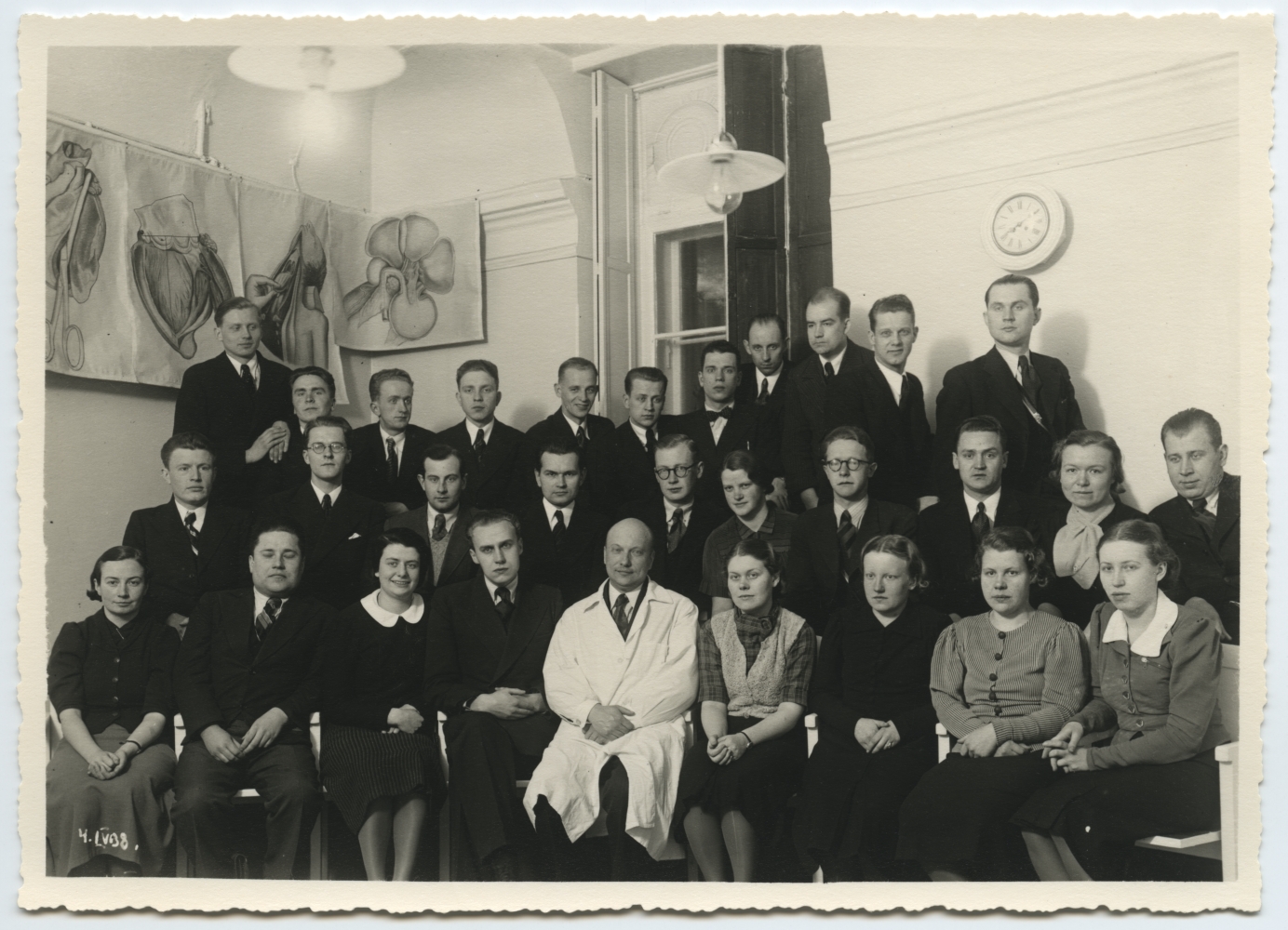 Arstiteaduse ajaloo loengutest 1937.-1938. a. osavõtjad Tartu ülikooli kohtuarstiteaduse instituudi ruumes koos õppejõud Herbert Normanniga. Grupipilt