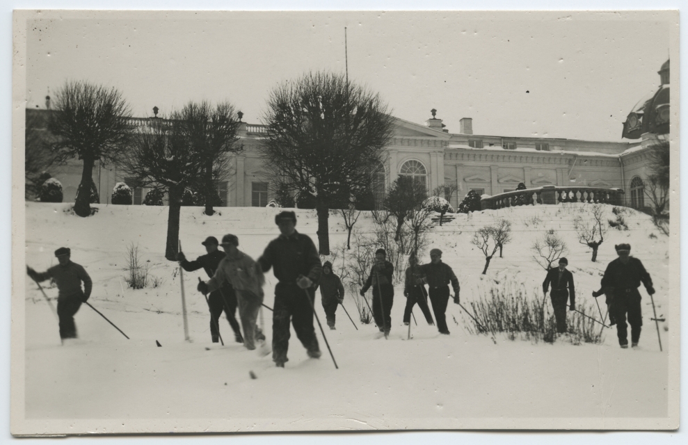 Tartu ülikooli arstiteaduskonna kehalise kasvatuse osakonna üliõpilased Raadi mõisa pargis suusatamas