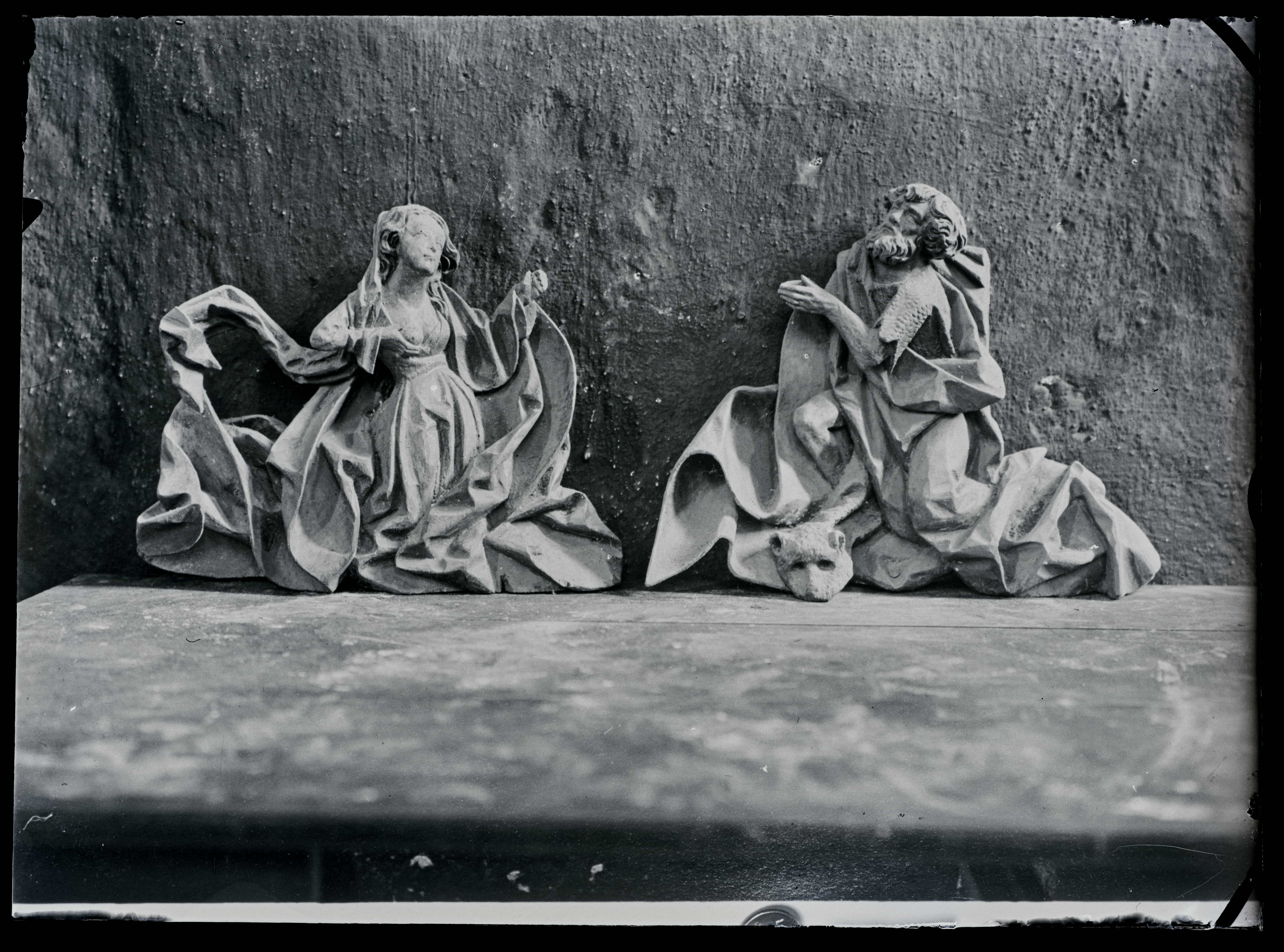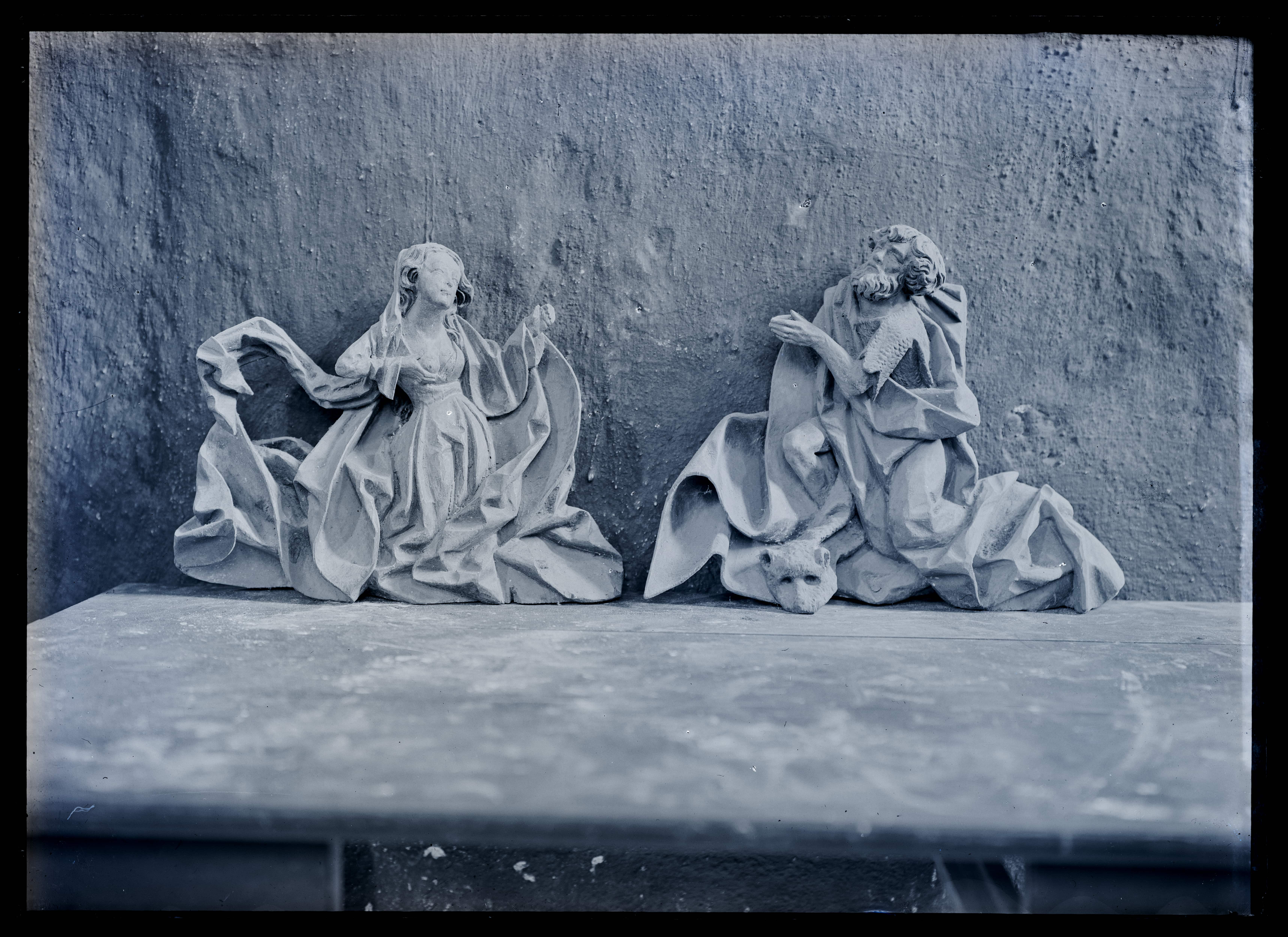Kaarma Peetri ja Pauli kirik. Sisevaade. Vana altarikapp (1547) lõunalöövis. Neitsi Maarja ja Ristija Johannes (16. saj I veerand). Benedikt Dreyer /?/
