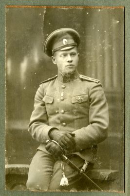 [Tundmatu mehe kolmveerandfiguurportree sõjaväevormis, pöördega paremale]