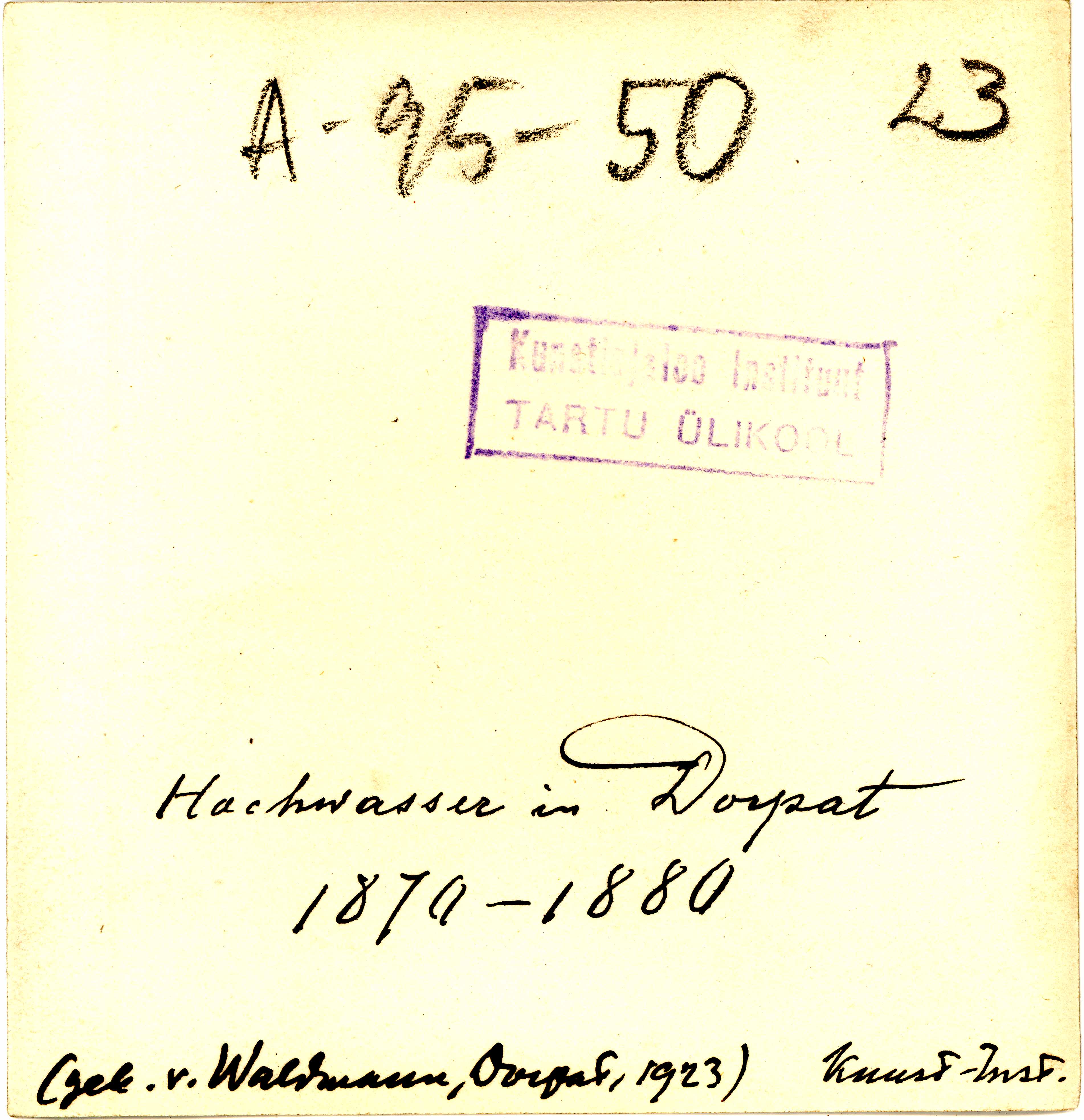 Tekst foto tagaküljel: Hochwasser in Dorpat. 1870-1880. (gek v Waldmann, Dorpat, 1923) Kunst. Inst. Tempel: Instituut