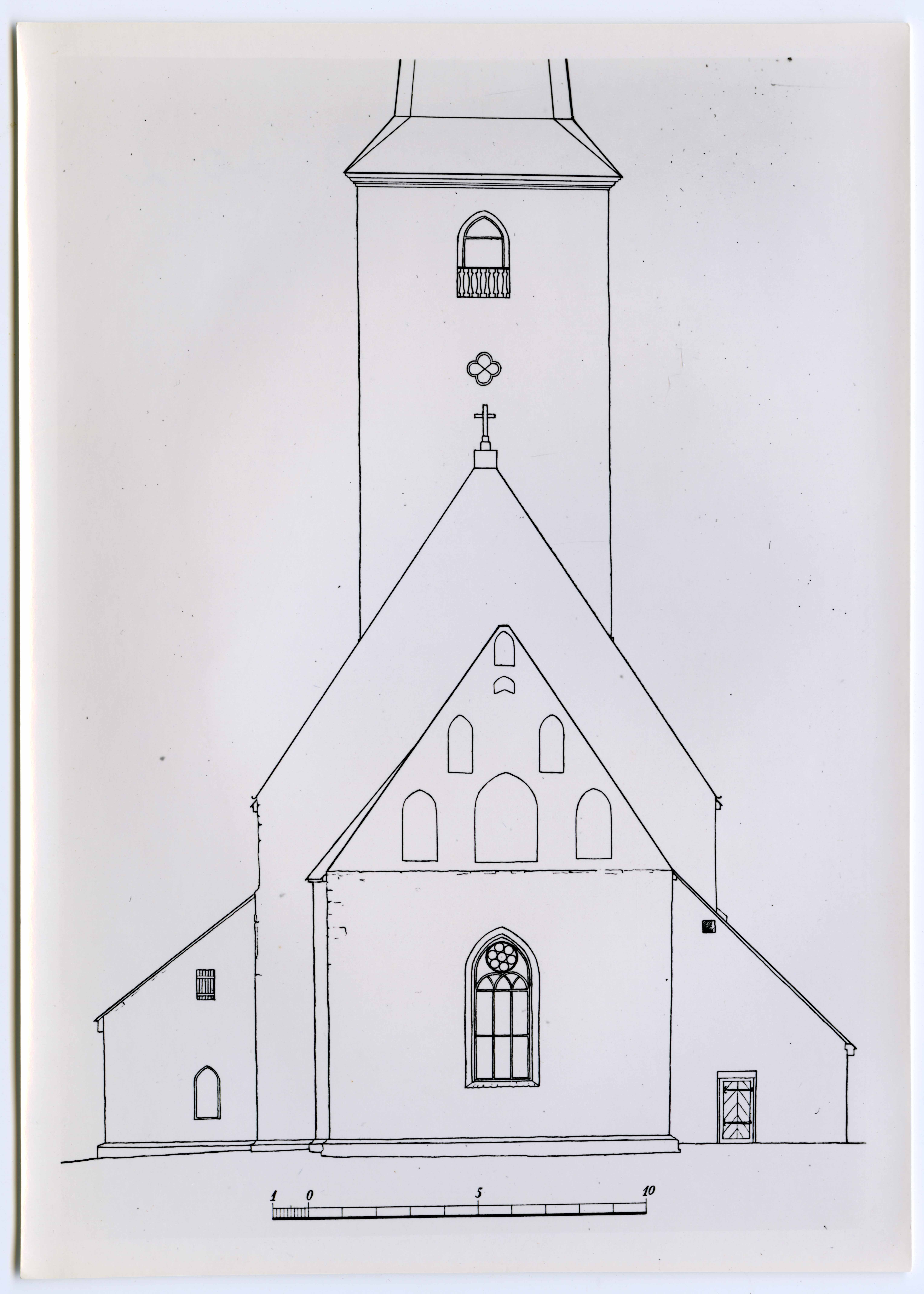 Kihelkonna Mihkli kirik. Vaade idast. Mõõtnud ja joonestanud J. E. Armolik 1943.a.