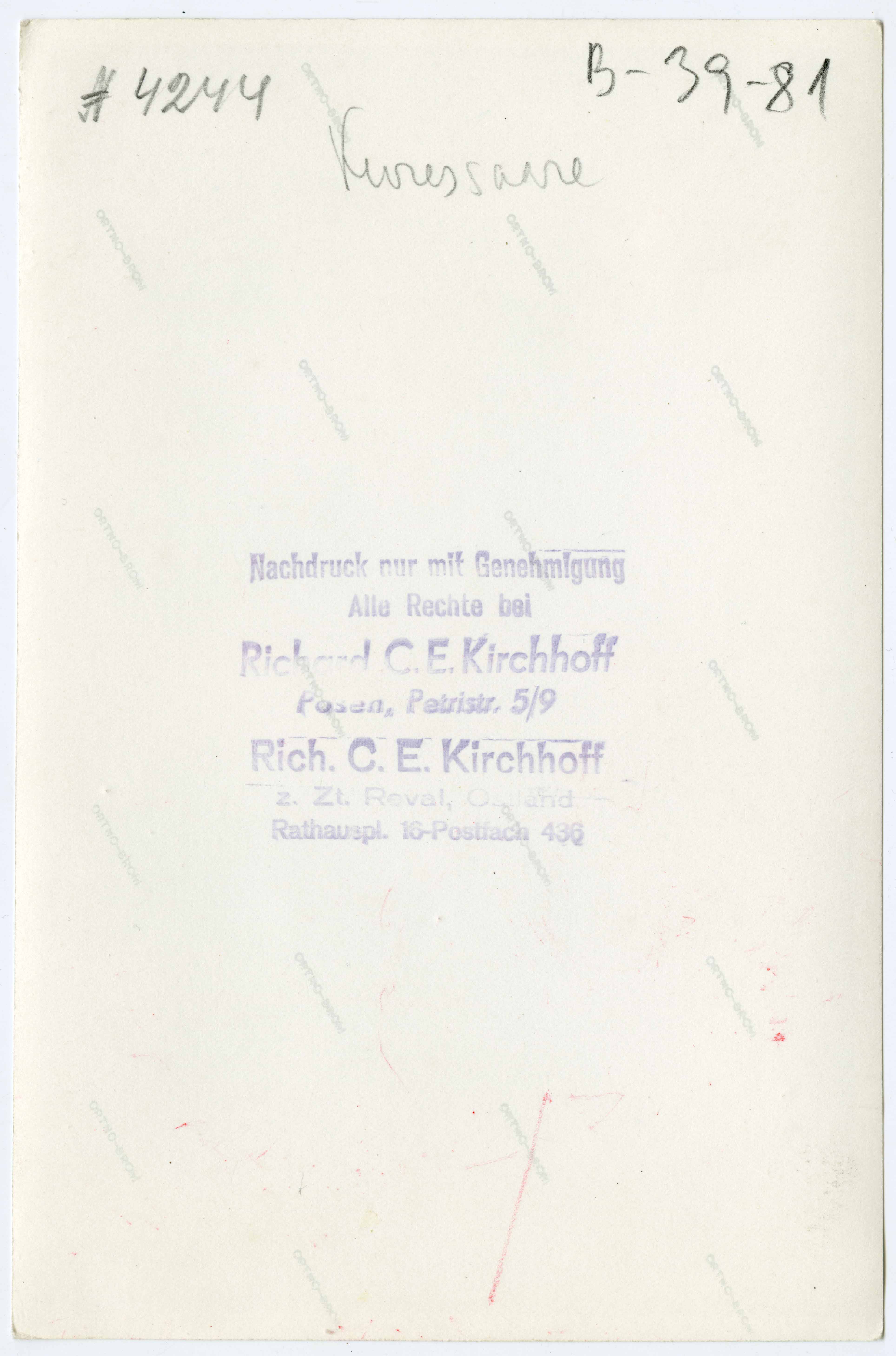 Tekst foto tagaküljel: N4244. Kuressaare. Templid: Kirchhoff