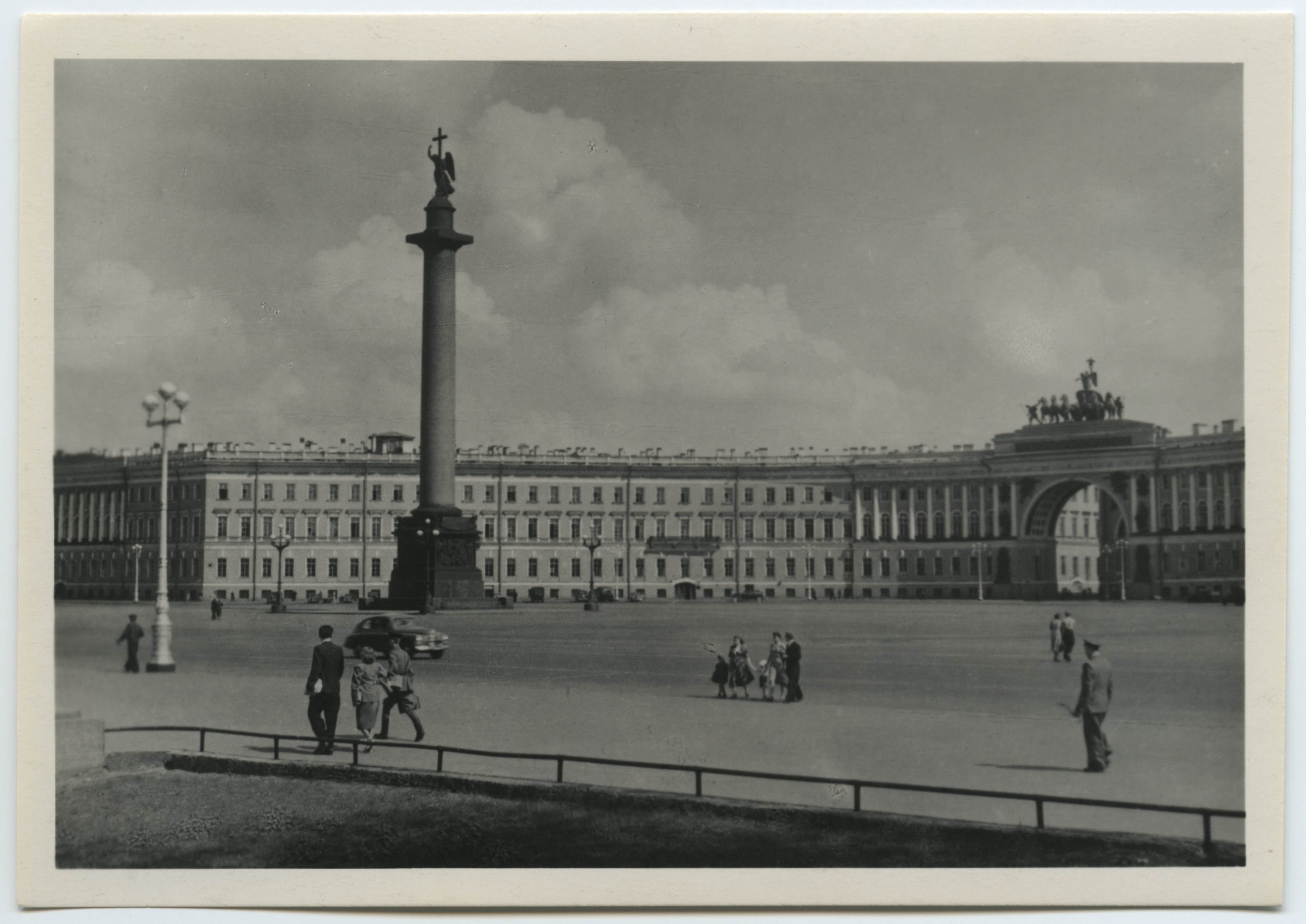 4. Iisaku katedraal; 5. Peeter I mälestussammas (Vaskratsanik). Tagaplaanil Iisaku katedraal; 6. Vaade Lenini muuseumi filiaali hoonele üle Neeva jõe; 7. Smolnõi; 8. Mereväemuuseum; 9. Narva väravad; 10. Admiraliteedihoone; 11. Paleeväljak; 12. Talvepalee (Ermitaaž); 13. Peeter-Pauli kindlus; 14. Raamatukauplus Dom knigi; 15. Vene muuseum. 1953; 16. Moskva vaksal; 17. Leninliku komsomoli nimeline teater; 18. A. V. Suvorovi riiklik memoriaalmuuseum; 19. Peeter I majamuuseum; 20. Nevski prospekt; 21. Vene-Jaapani sõjas hukkunud sõjalaeva "Stereguštši" mälestussammas Aleksandrovski pargis; 22. Aleksandr Vassiljevitš Suvorovi mälestussammas; 23. Vassili saar; 24. S. M. Kirovi nimeline Riiklik Akadeemiline Ooperi- ja Balletiteater