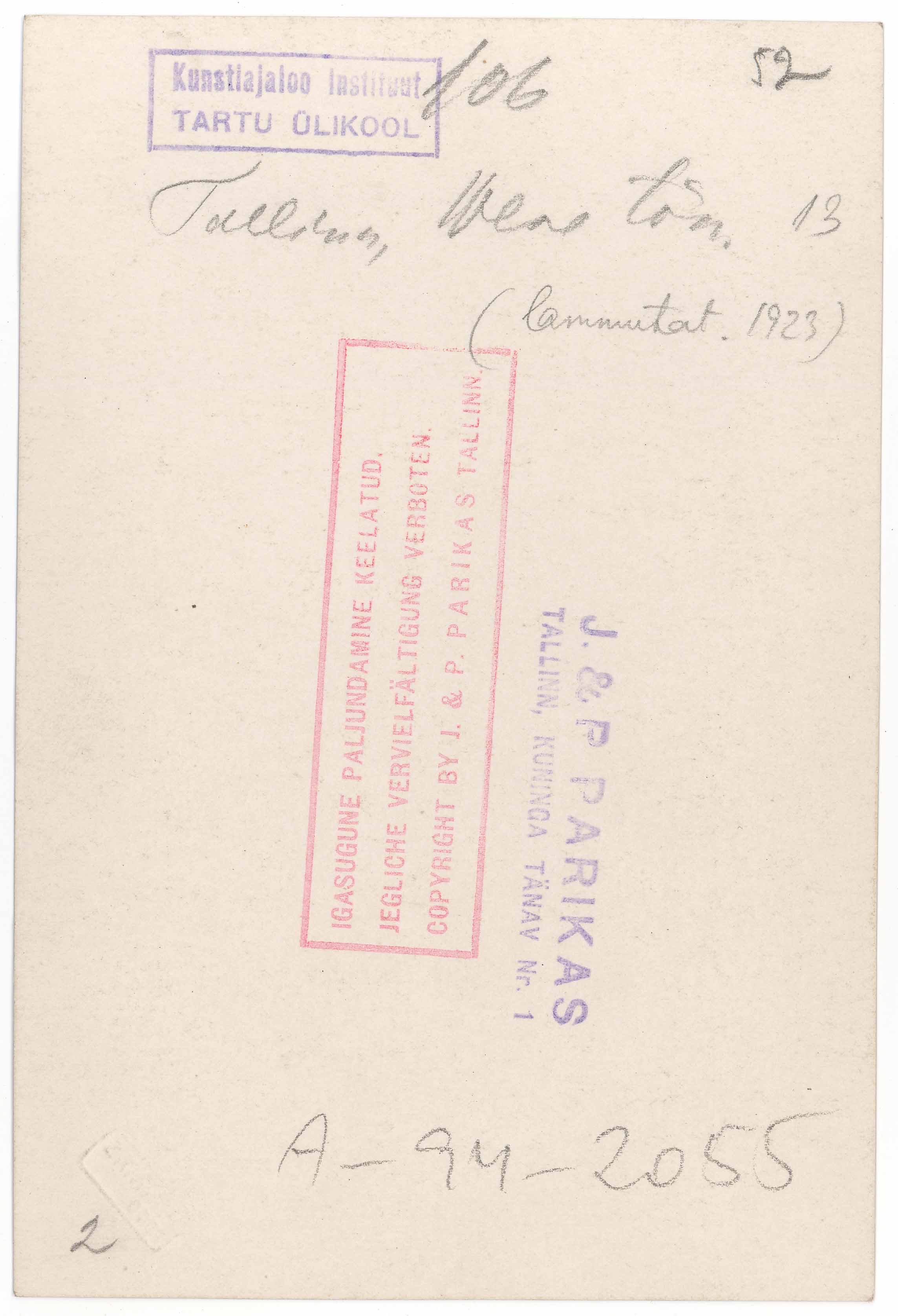 Tekst foto tagaküljel: 106. Tallinn, Wene tän. 13 (lammutat 1923). Templid: J&P; Instituut