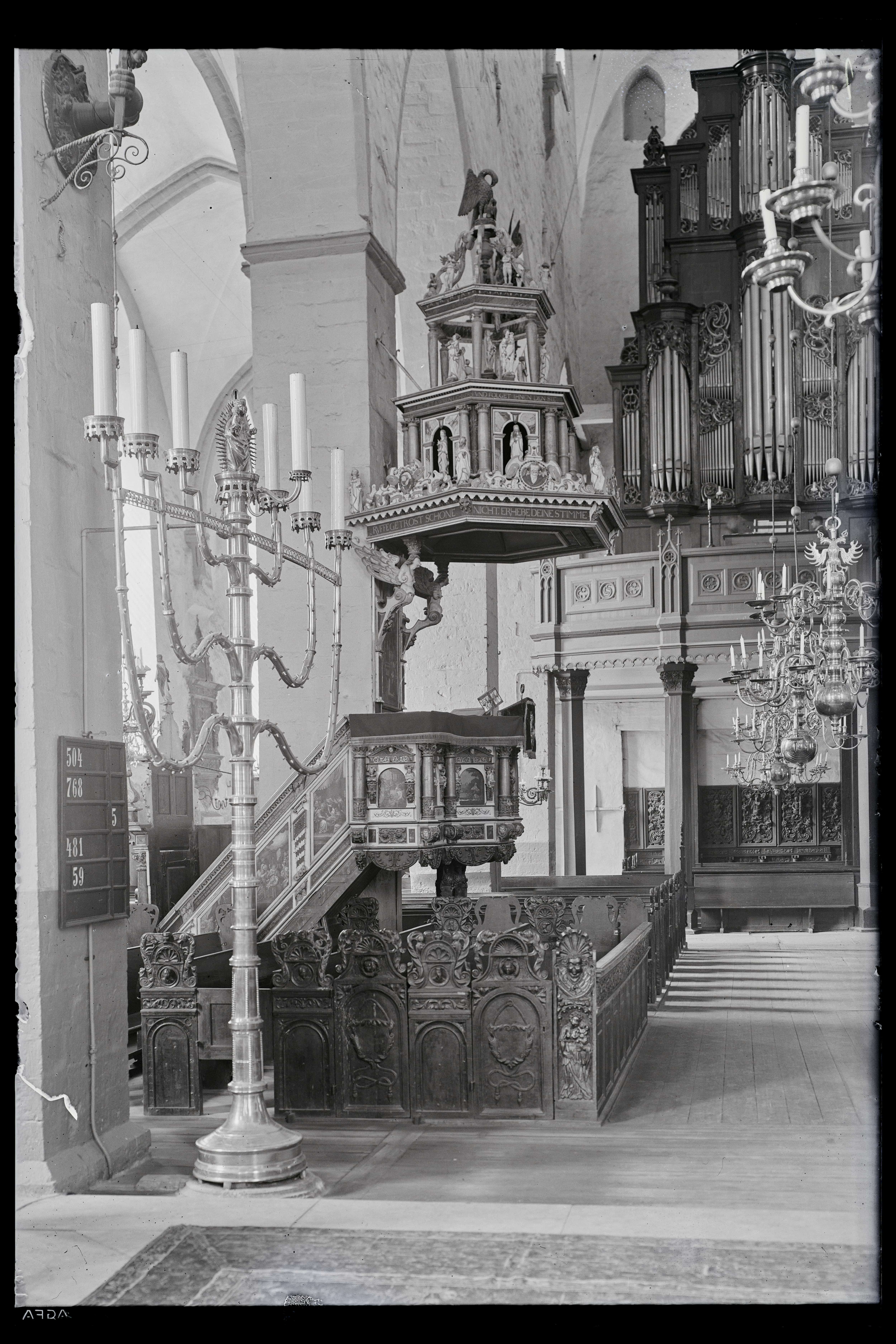 Tallinn. All-linn. Niguliste kirik. Kantsel (Bogislaus von Rosen. 1624). Üldvaade koorist. Tagaplaanil orel