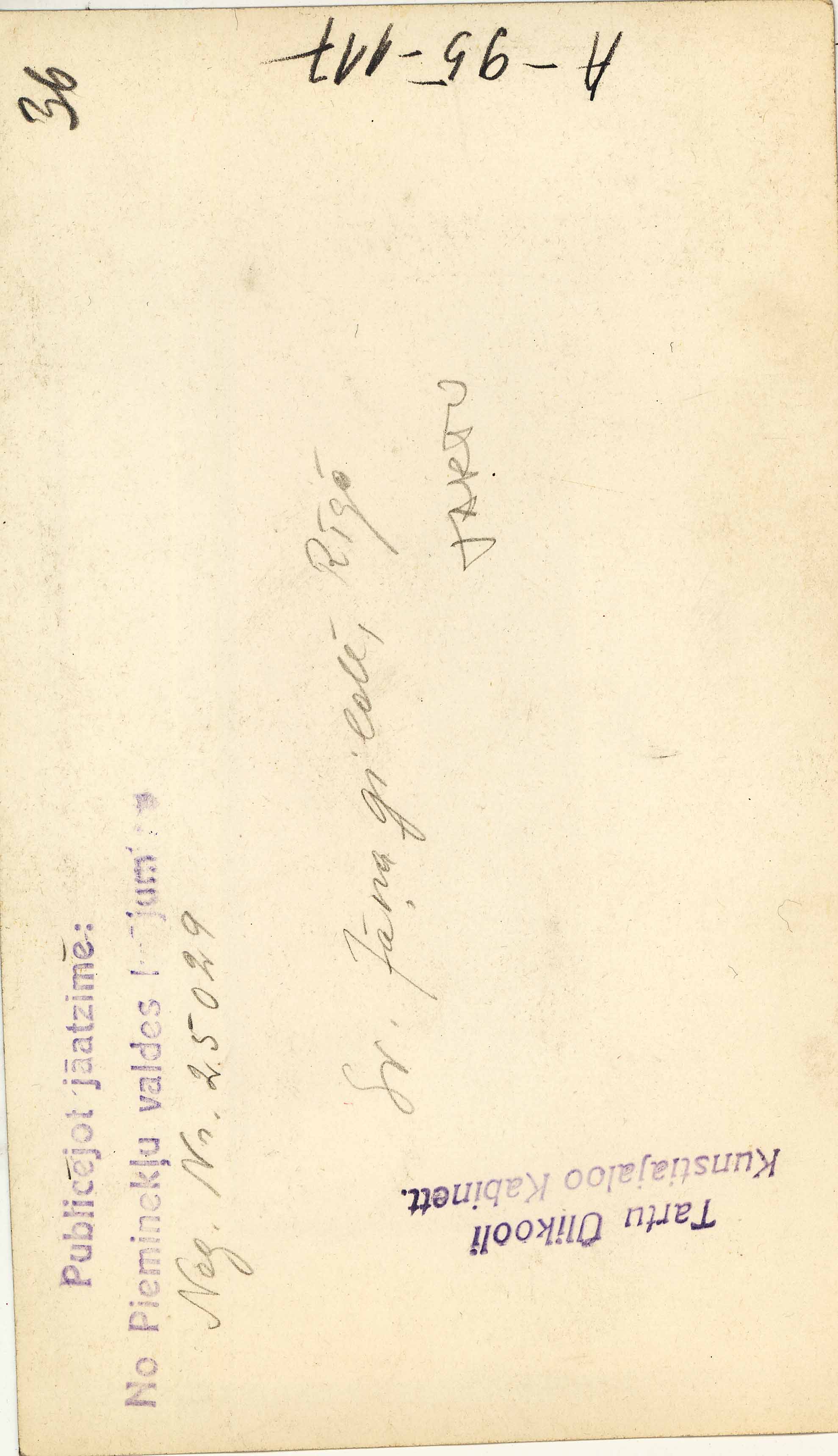 Tekst foto tagaküljel: Neg Nr. 25029. Sr. Jana gilde, Riga. TARTU. Templid: Publicejot jaatzime: No Piemineklu valdes ...; Kabinett