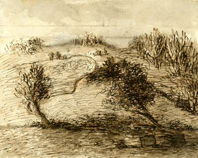 kohavaated, maastikud, baltisaksa, kunst, joonistus, seepia (kunst), 19. saj., tušijoonistus