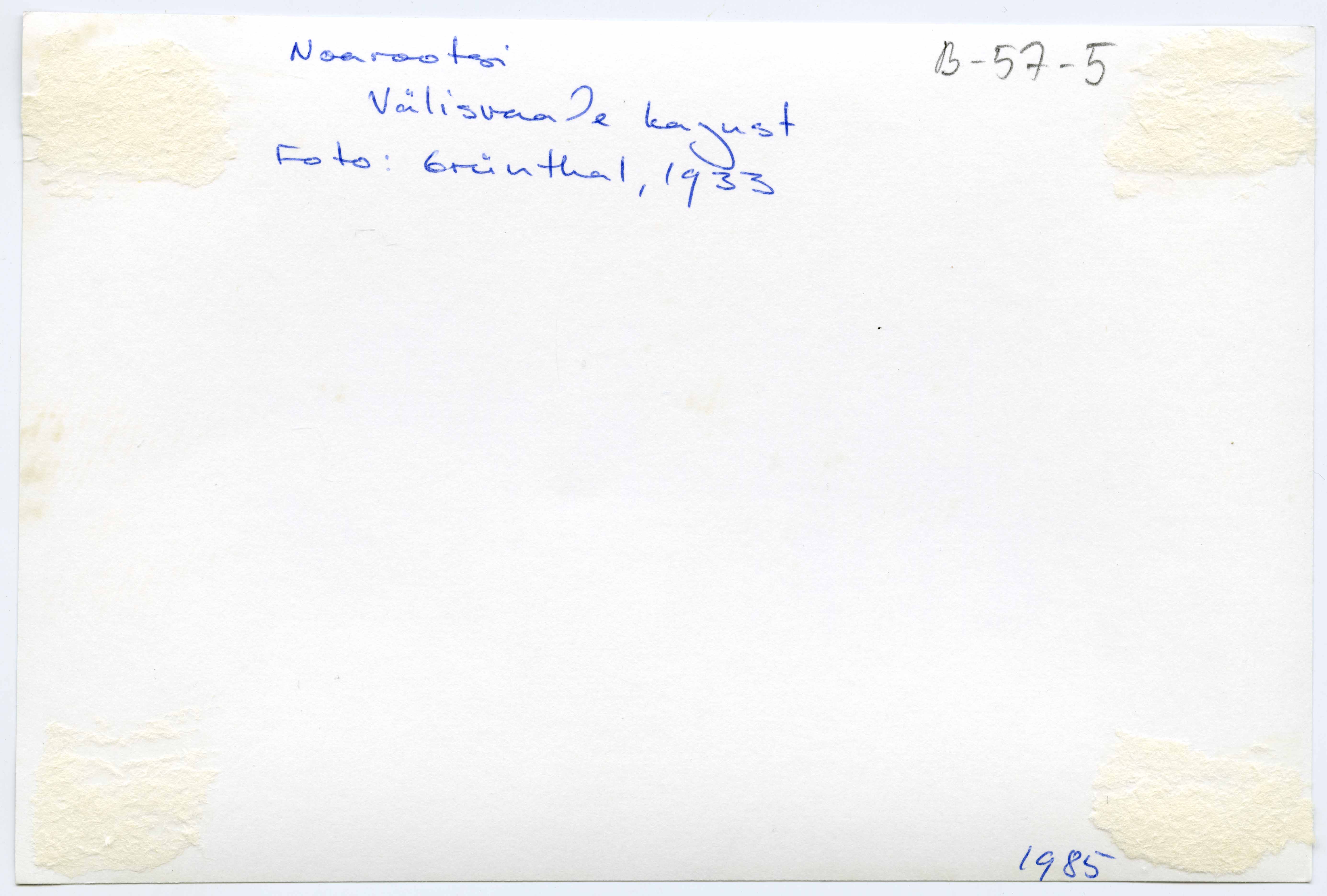 Tekst negatiivi ümbrikul: Noarootsi. Välisvaade. Nuckö nr 27. Foto Grünthal 1933. Tartu Ülikooli Kunstiajaloo Kabinett 211-12
