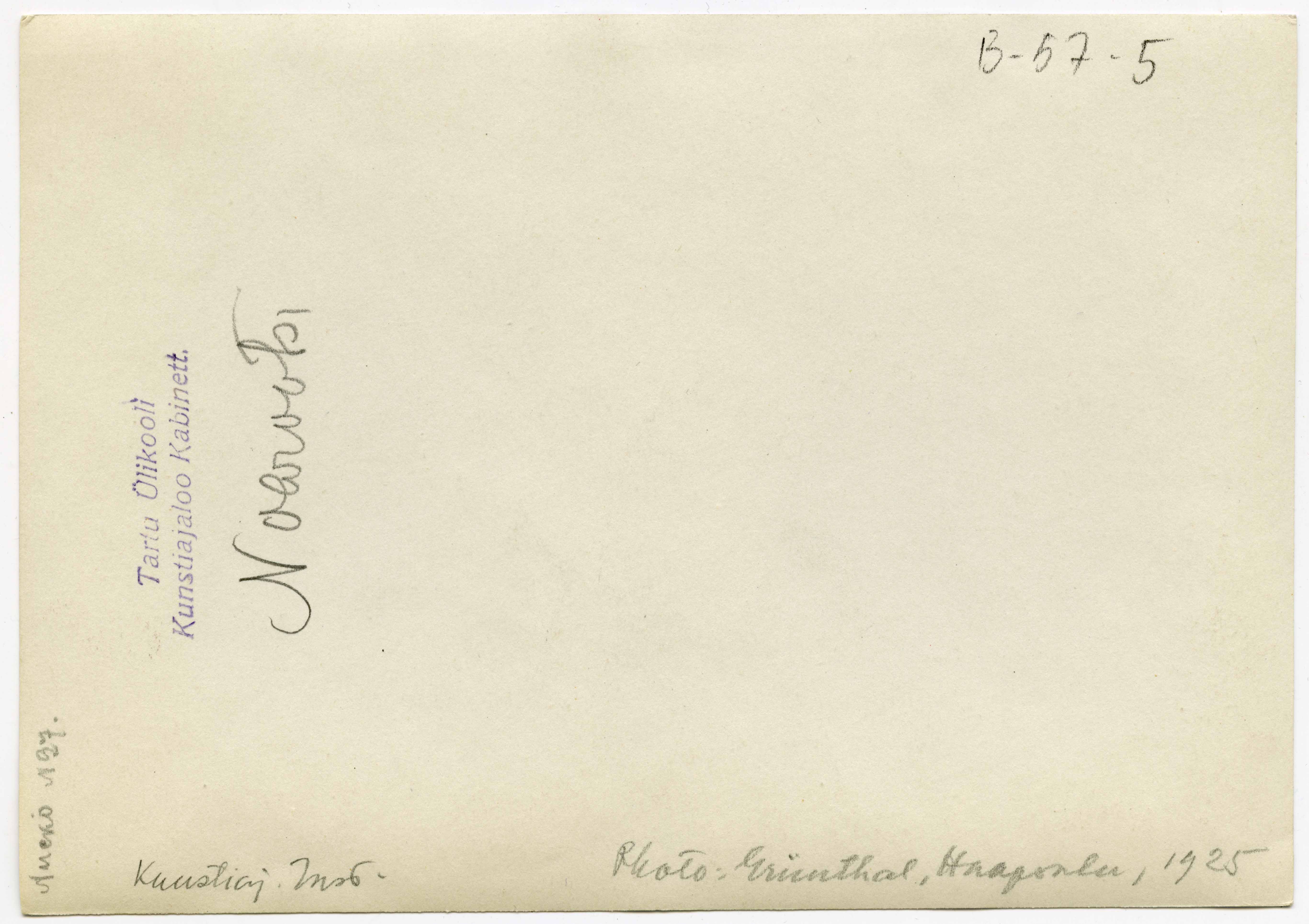 | dc.description | Tekst foto tagaküljel: Noarootsi. Photo: Grünthal, Haapsalu, 1925. Kunstiaj. Inst. | et |