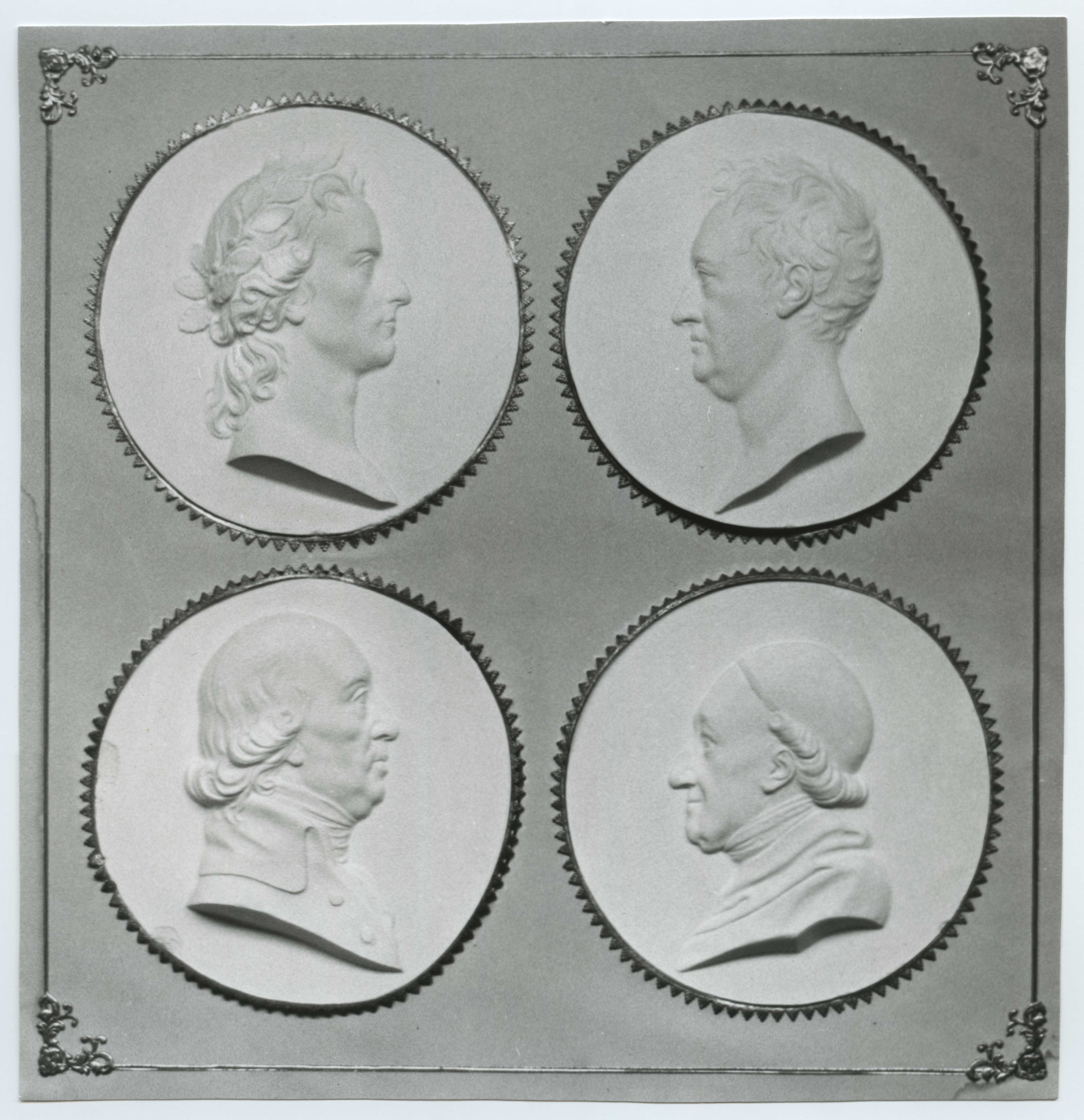 [Friedrich Schilleri, Johann Wolfgang von Goethe, Johann Gottfried von Herderi ja Christoph Martin Wielandi portreemedaljonid profiilis]