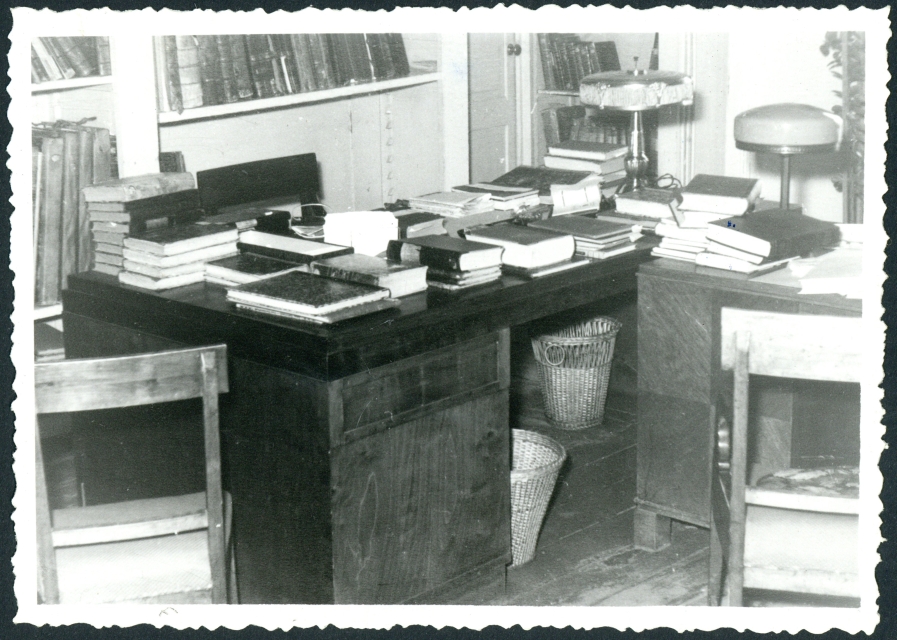 Eduard Vigeli töölaud ja tööruumi aken Tartu ülikooli raamatukogu bibliograafia osakonnas