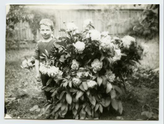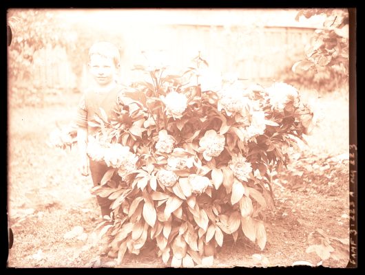 [Tundmatu poiss pojengipõõsa juures]