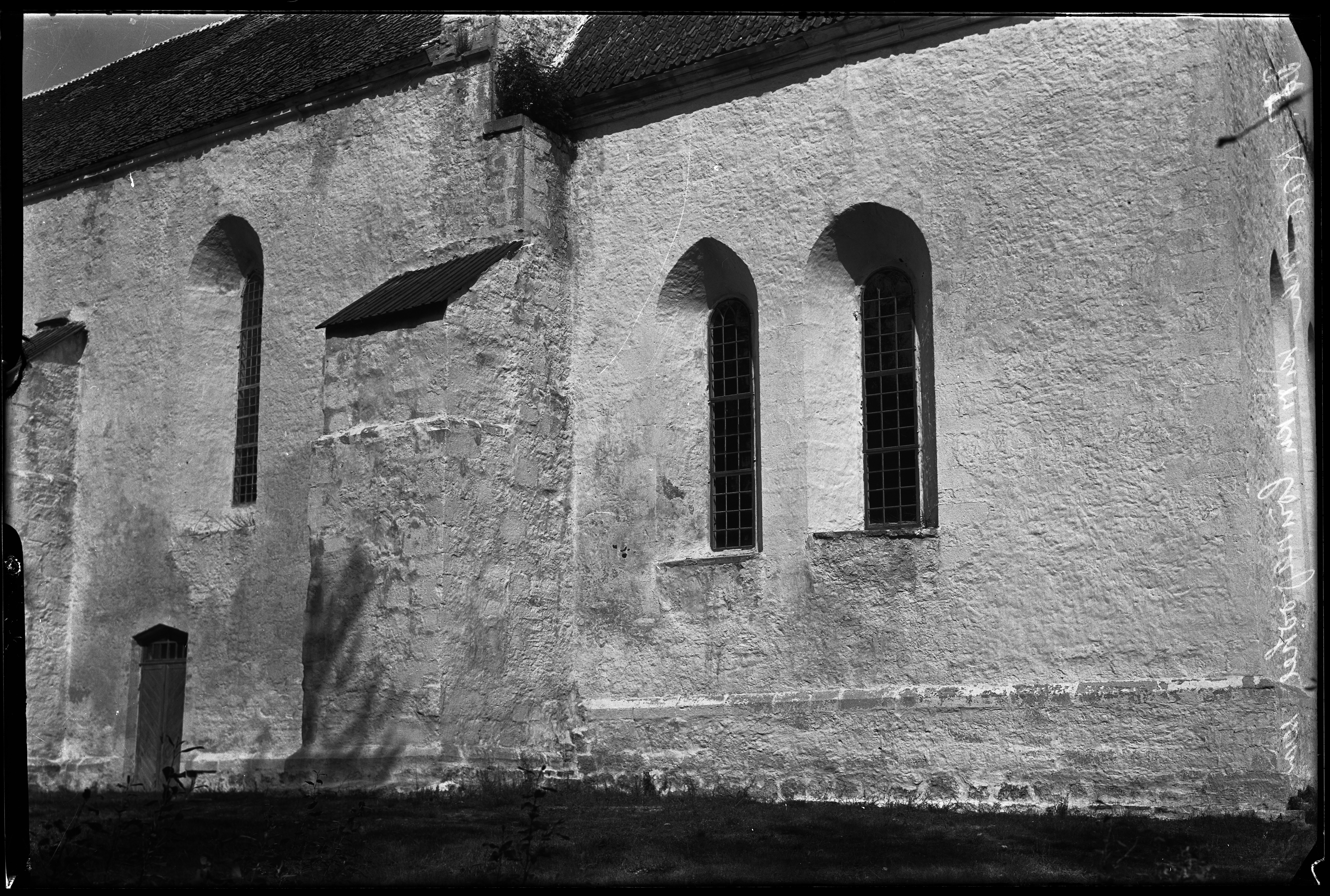 Tekst foto tagaküljel: Kaarma kiriku lõunapoolne välissein. Juuli 1931. Foto K. Kalamees. Tempel: Kabinett