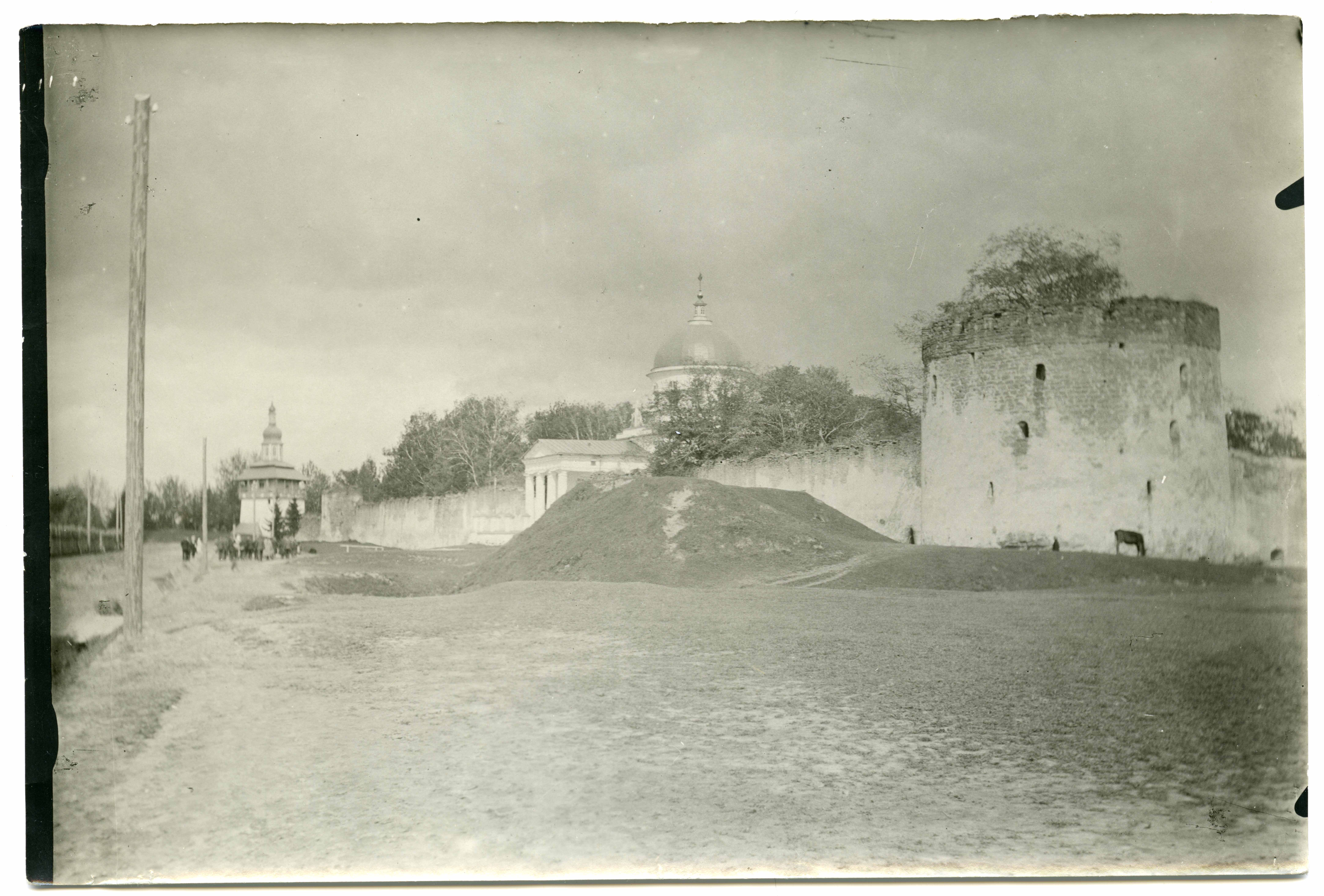 Petseri kloostri ringmüür väljast, vasakul peasissepääs, keskel Mihailovski kirik