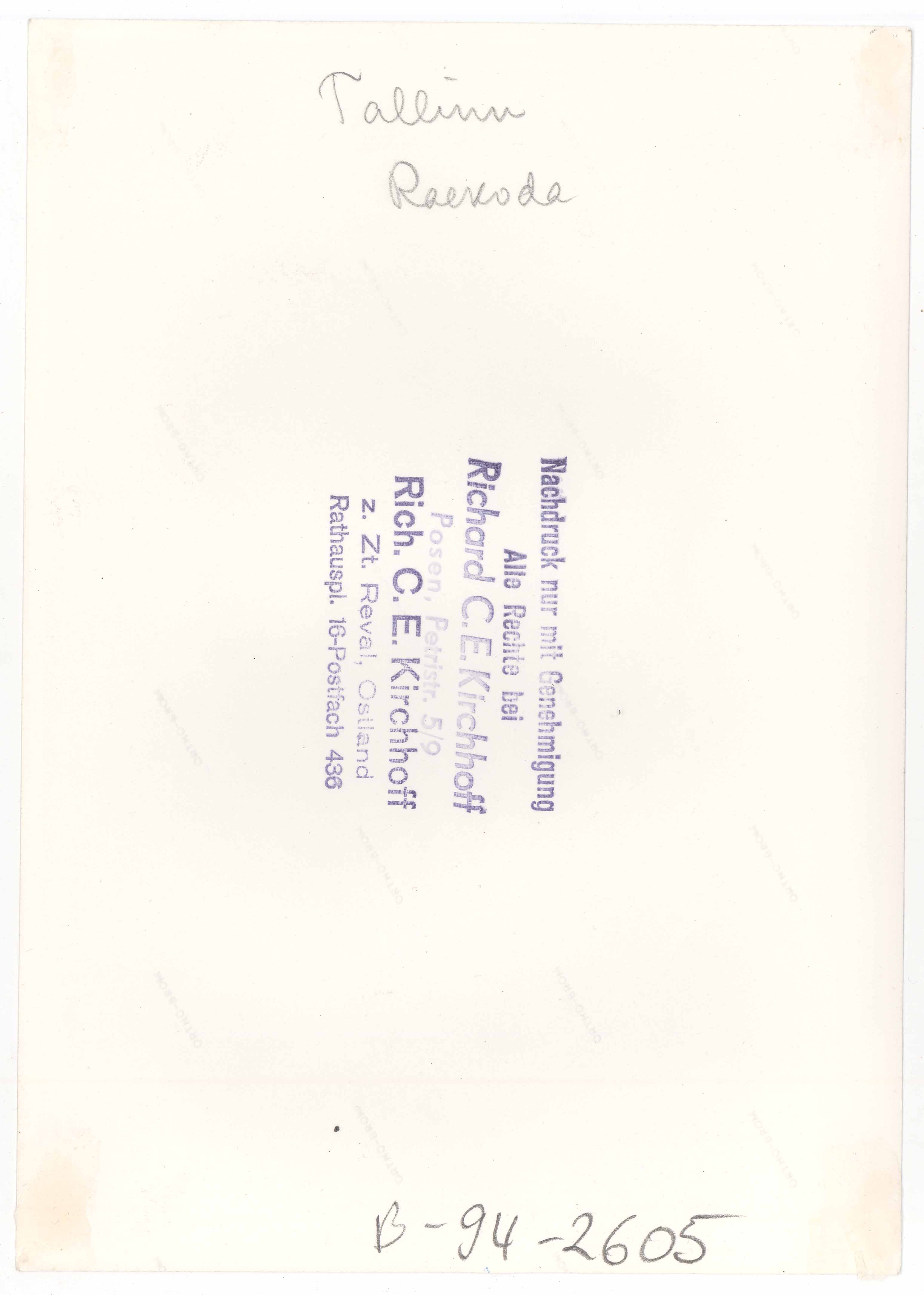 Tekst foto tagaküljel: Tallinn. Raekoda. Tempel: Kirchhoff