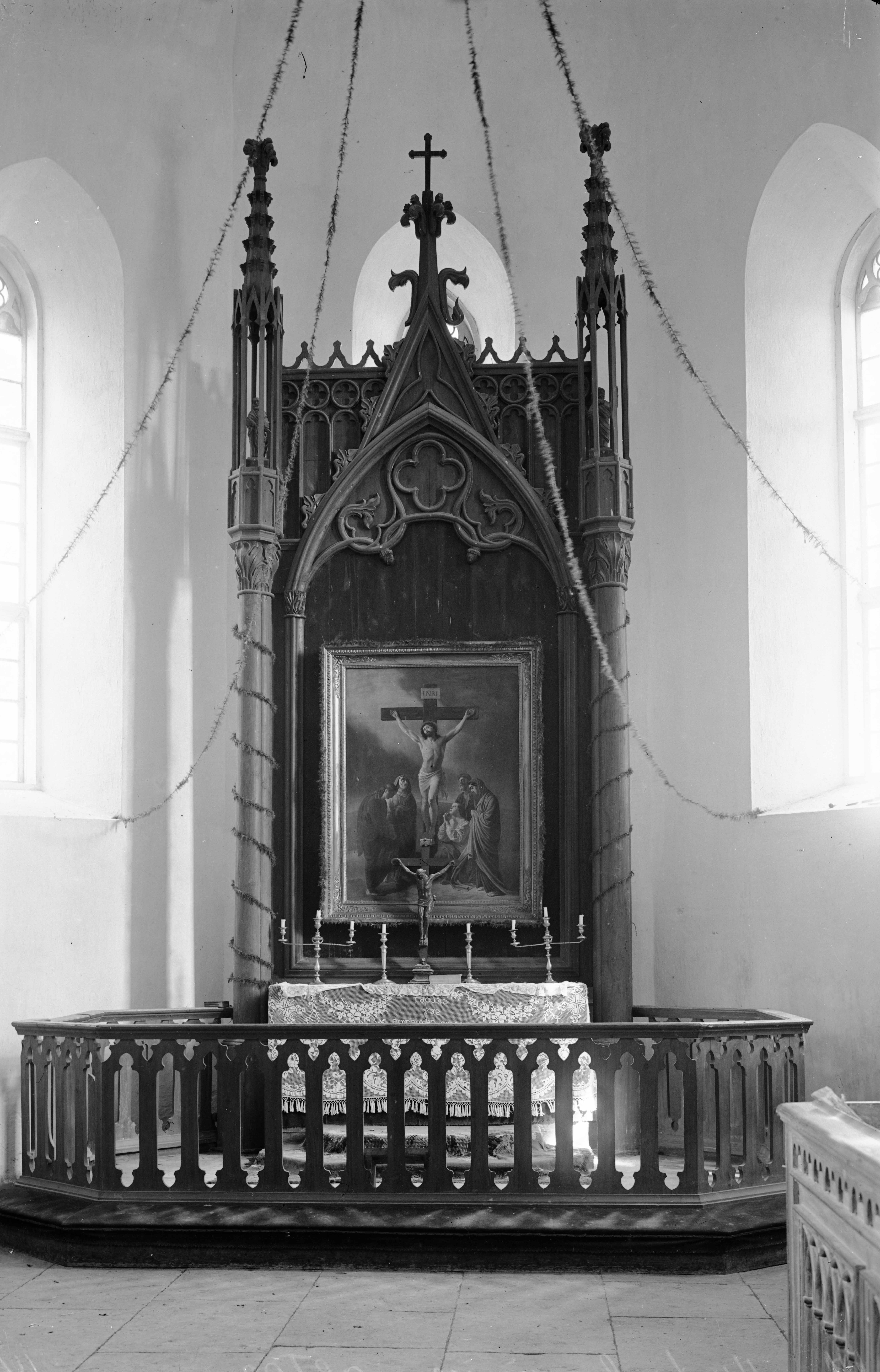 Tekst foto tagaküljel: Mustjala kiriku altaripilt. Juuli 1931. Foto K. Kalamees. Tempel: Kabinett