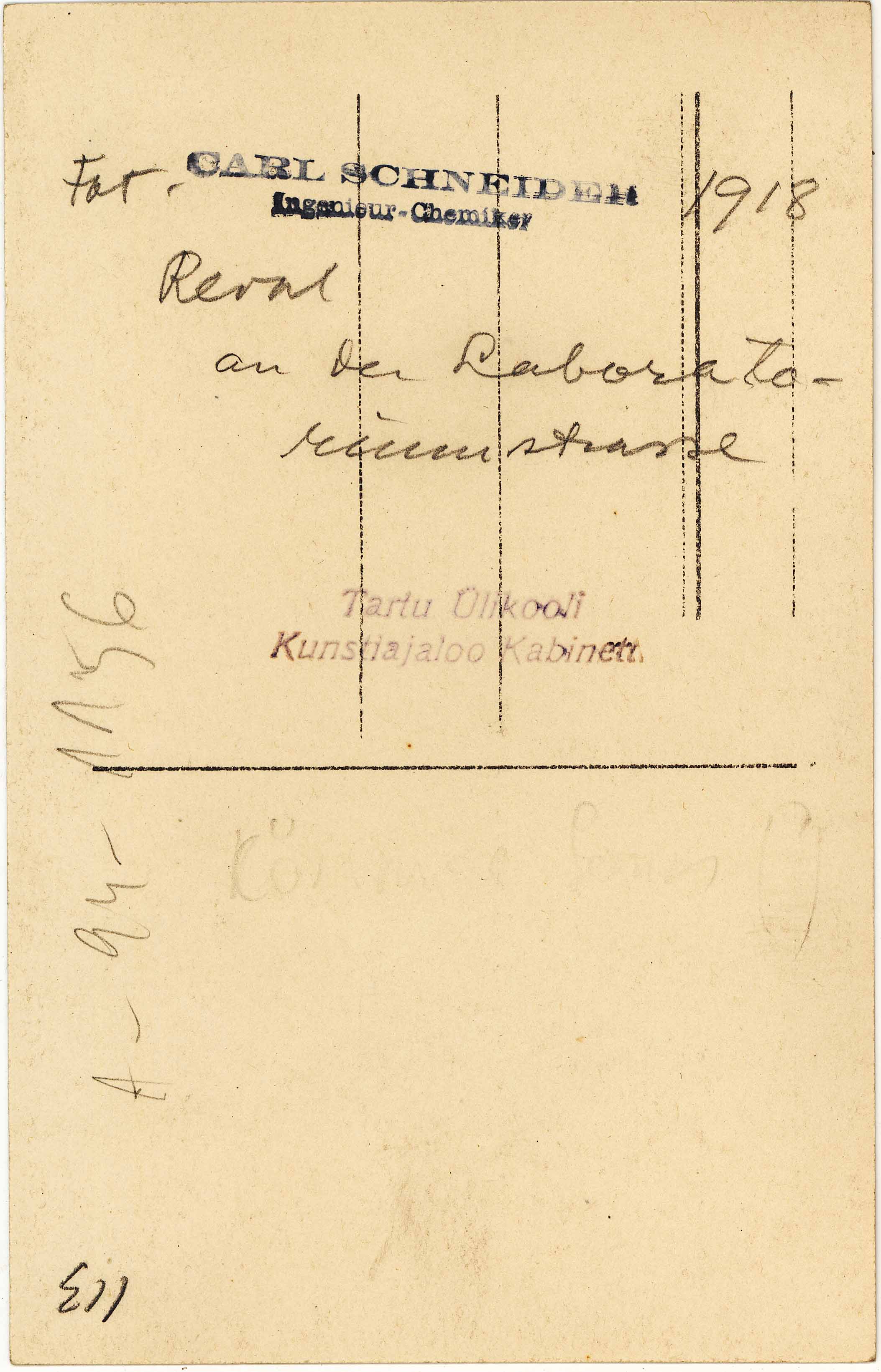 | dc.description | Tekst foto tagaküljel: 1918. Reval an der Laboratoriumstrasse. Tempel: Schneider, Kabinett | et |