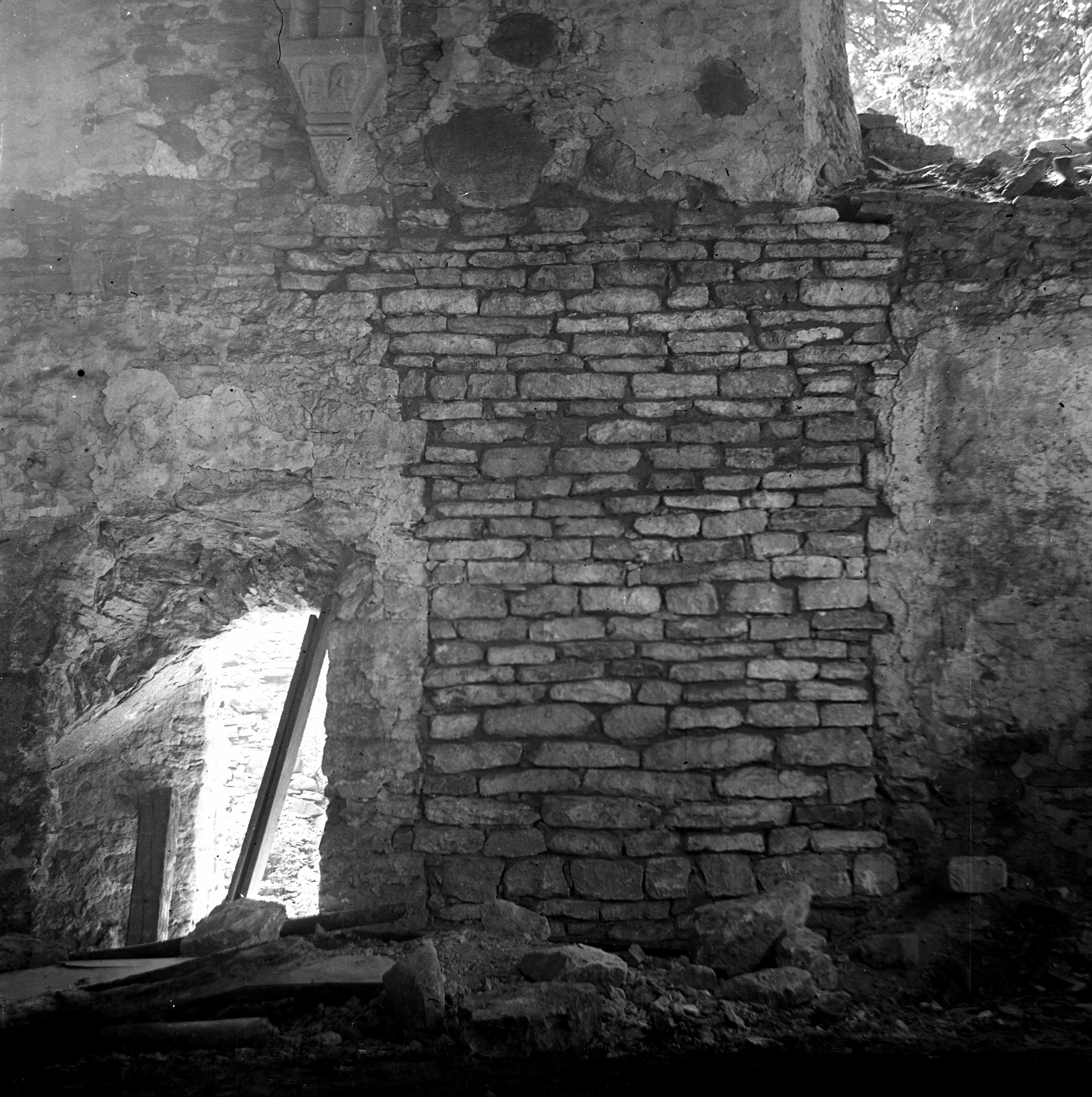 Padise kloostri varemed. Müüri detail. Ülemises osas ehisraamiga aknaga kaunistatud raidkonsool