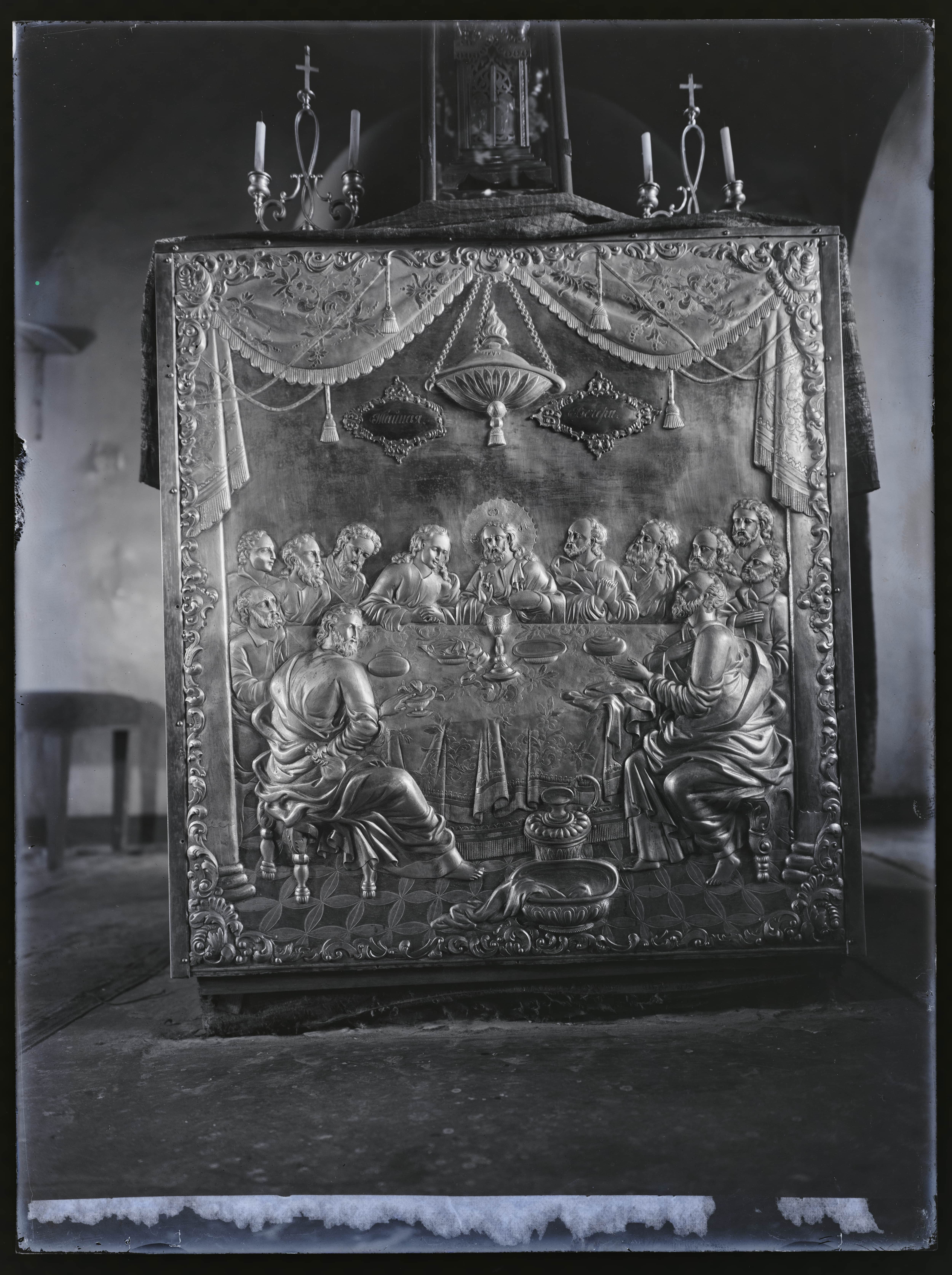 Petseri klooster. Uspenski kirik(?). Hõbedast altarireljeef. Püha Õhtu söömaaeg