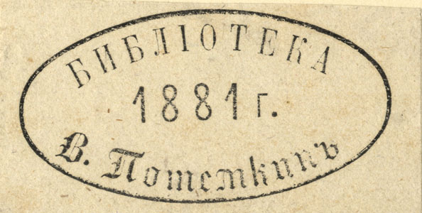 | dc.description | Ovaalis: БИБЛIОТЕКA / 1881г. / В. Потемкинъ. | |