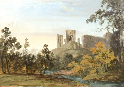 Vastseliina, Eesti, kohavaated, maastikud, linnused, baltisaksa, kunst, joonistus, guaššmaal, 1820-ndad, 19. saj.