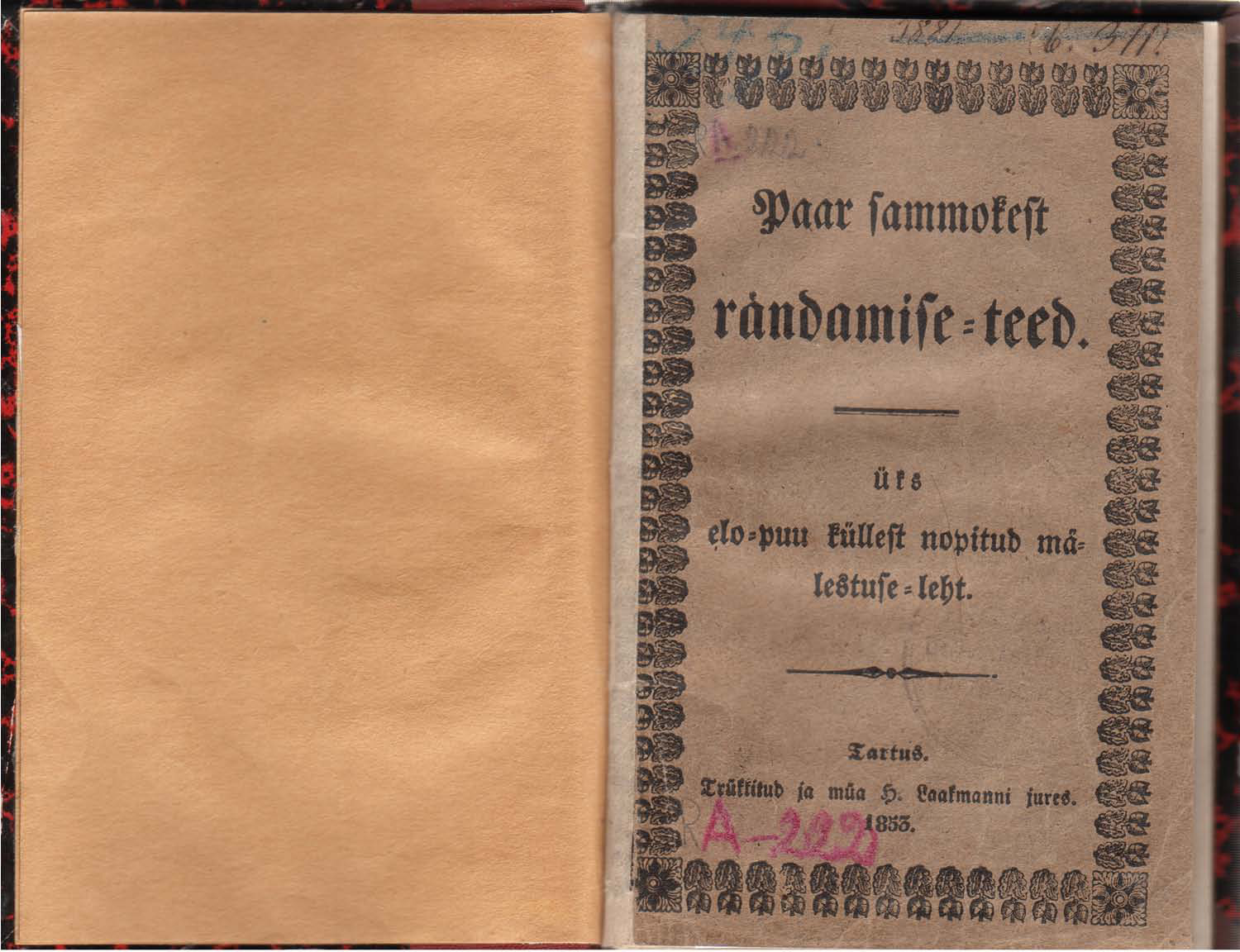 Paar sammokest rändamise-teed : üks elo-puu küllest nopitud mälestuse-leht