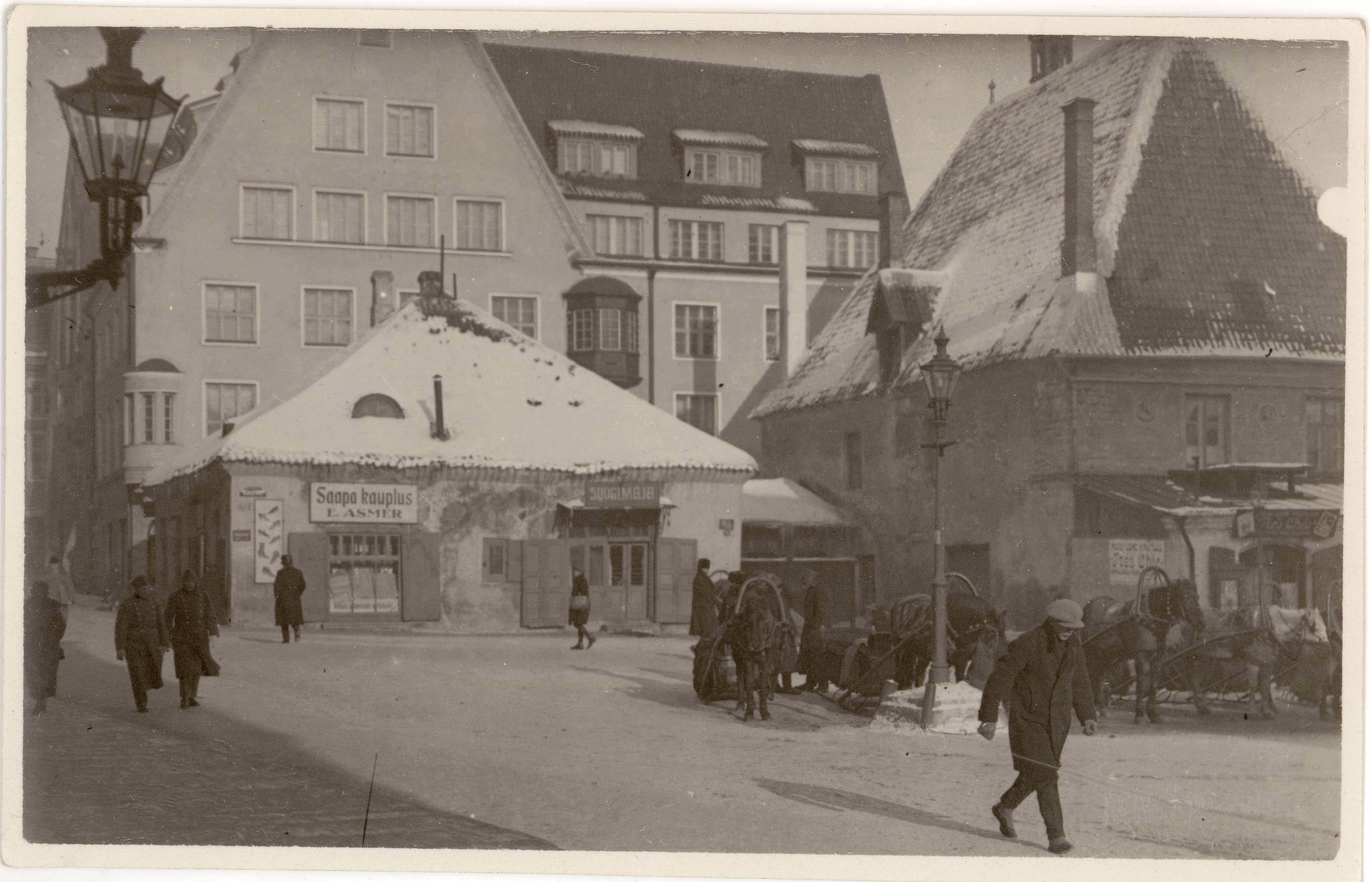 Tallinn. Vaekoda ja selle kõrval asuv hoone Raekoja platsil (hävinud). Vaade S-st