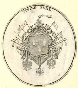 | dc.description | Ovaalis vapp, vapikilbil kolm käelaba. Joonises ülal deviis: STRIKE. SURE. | |