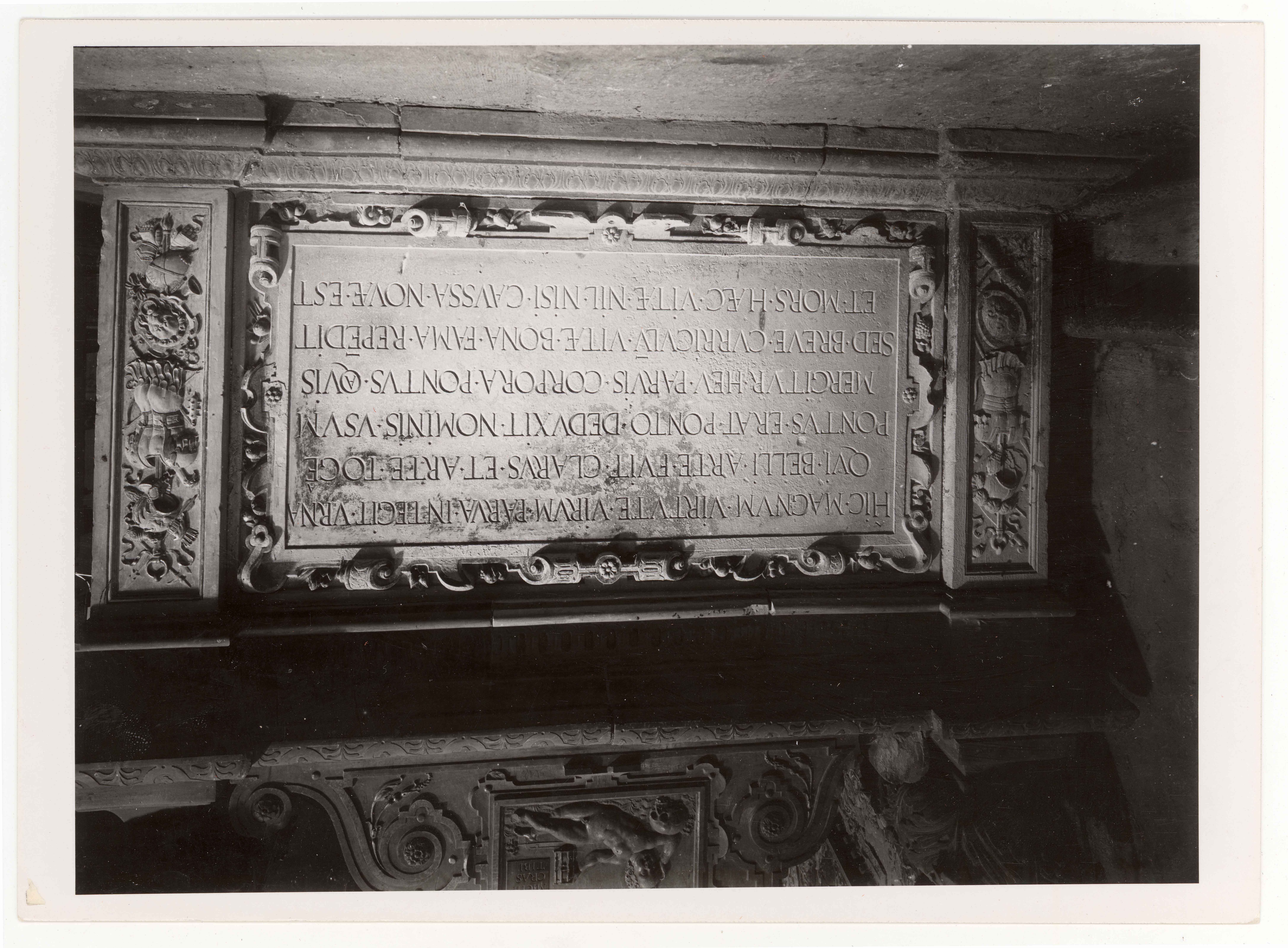 Tallinn. Toomkirik. Pontus de la Gardie hauamonumendi sarkofaagi vasakpoolne külg raidkirjadega
