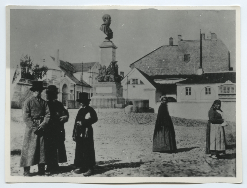 Tartu. Vaade Barclay platsile Michael Andreas Barclay de Tolly mälestussambaga ja hoonetele platsi ääres