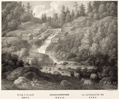 Soome, Kyro, kohavaated, maastikud, kosed, baltisaksa, kunst, graafika, litograafia, 19. saj., 1820-ndad