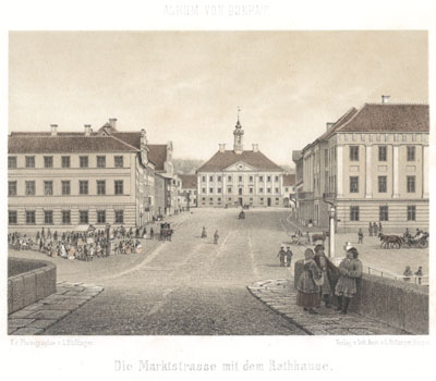 Eesti, Tartu, kohavaated, linnavaated, väljakud, hooned, raekojad, baltisaksa, kunst, graafika, litograafia, kunstialbumid, 1860-ndad, 19. saj.