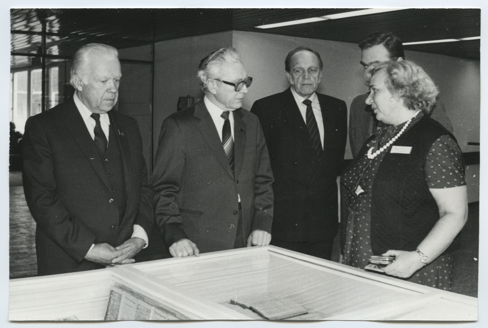 NSV Liidu kultuuriminister Pjotr Demitšev Tartu ülikooli raamatukogu uue hoonega tutvumas