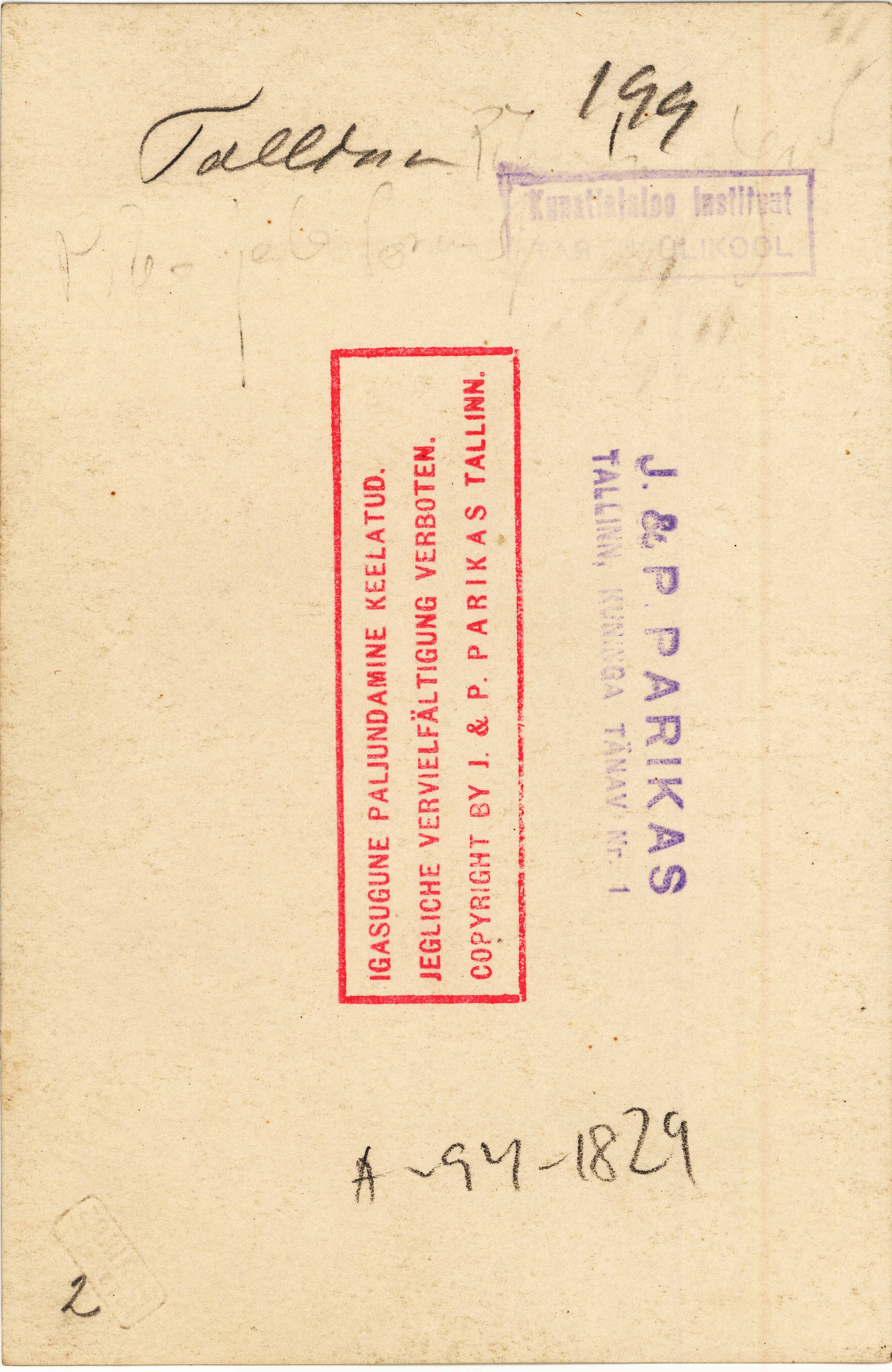 Tekst foto tagaküljel: Tallinn 199. Templid: J&P; Instituut