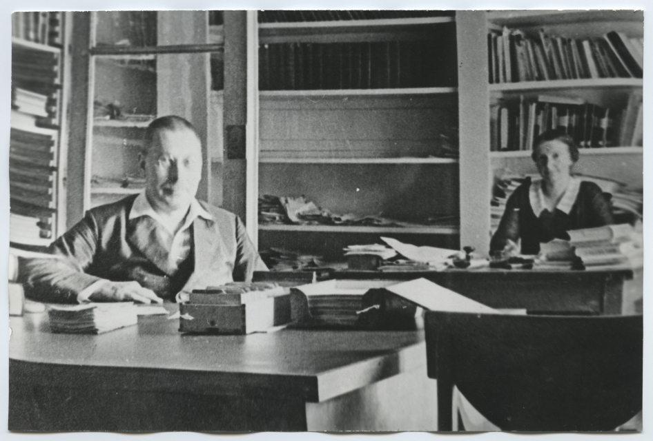 Karl Weltmann ja Linda Lao Tartu ülikooli raamatukogus oma töölaudade taga 1930-ndatel