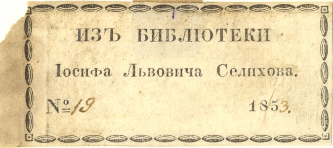 Nelinurkses raamistuses: ИЗЪ БИБЛIОТЕКИ / Iосифа Львовича Селихова. / № 185_